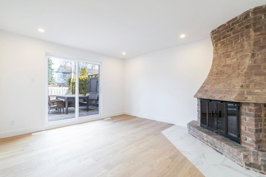 主层采用开放式布局,设有正式客厅与宽敞的餐厅区域,空间通透、采光充沛。厨房面积大、配有中岛工作台,与用餐区及家庭厅无缝衔接,适合家庭日常活动及款待宾客。家庭厅设有原砖砌木柴壁炉与法式露台门,通向大型木质露台及精心打理的私密后院。入口处设有带法式门的玄关,楼梯装饰有经典墙面线条,整体氛围温馨高雅。
