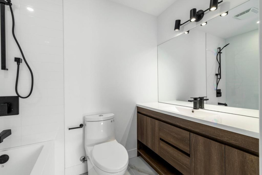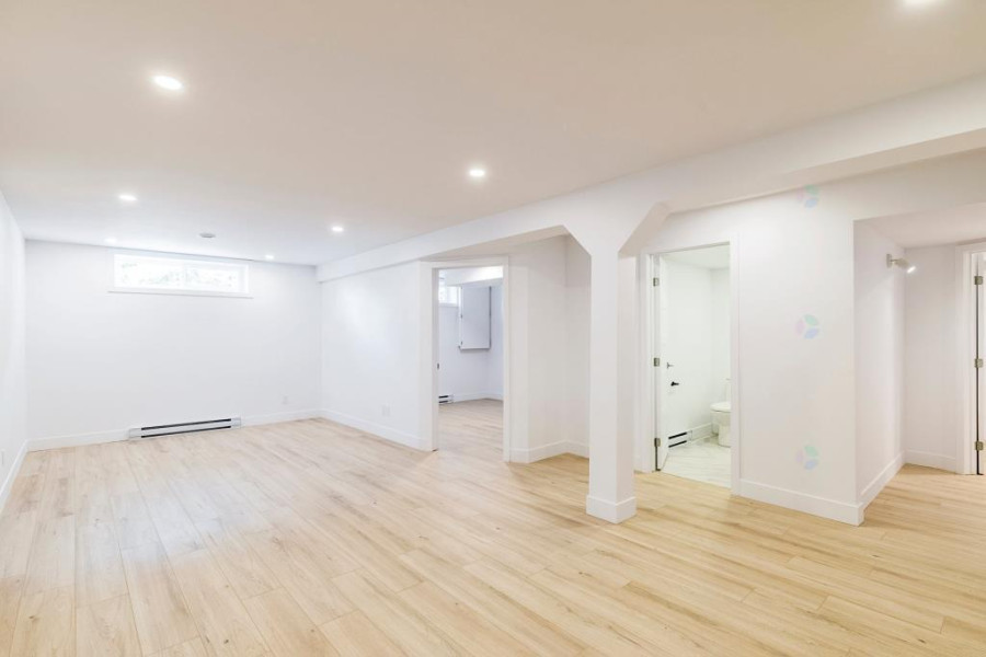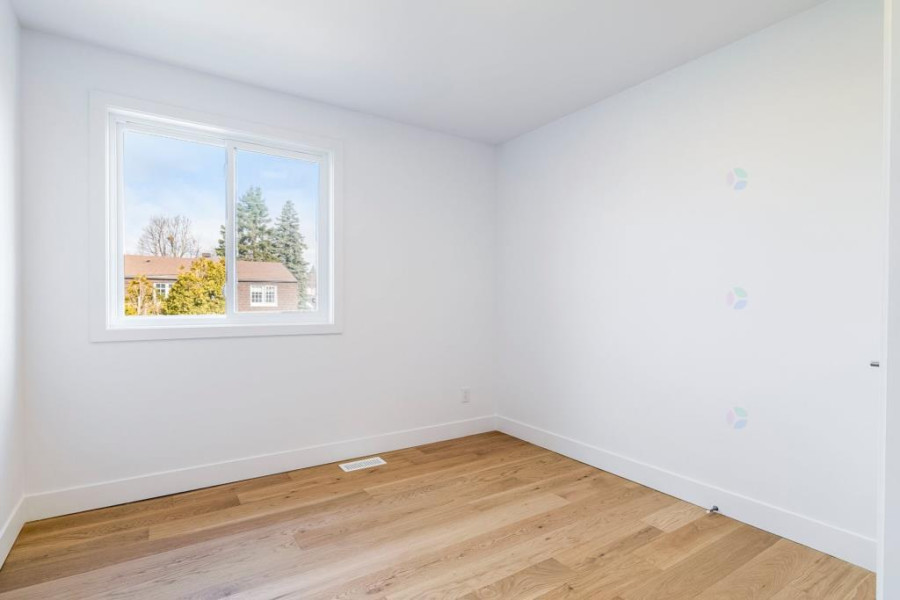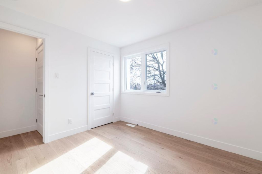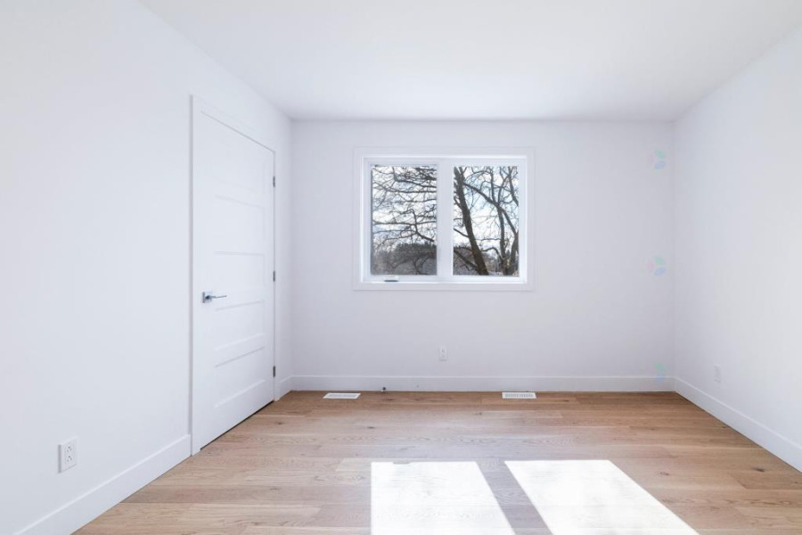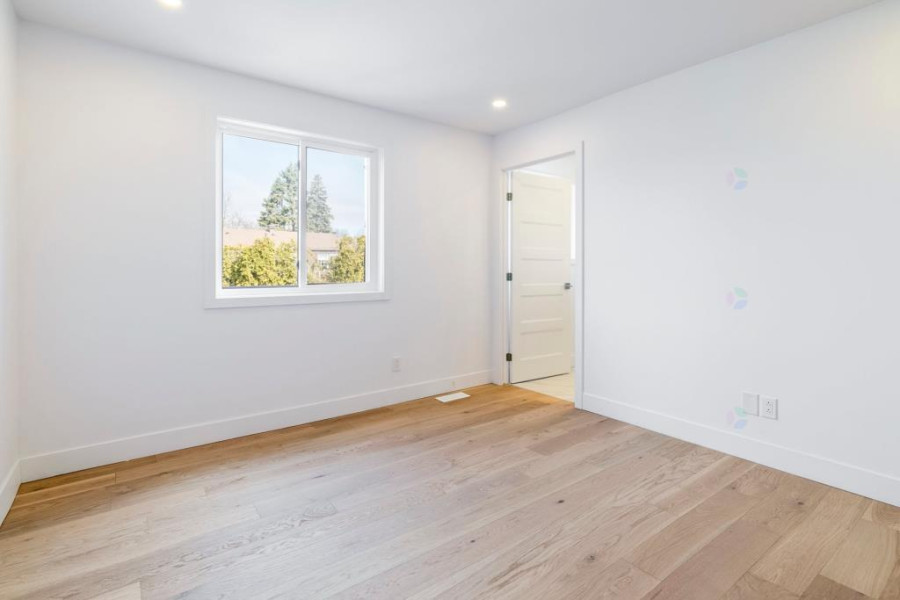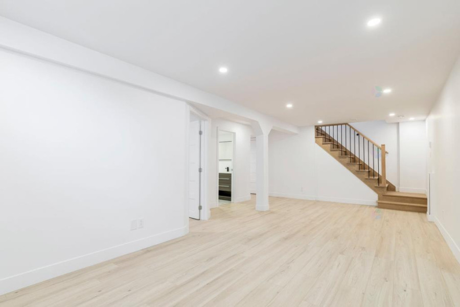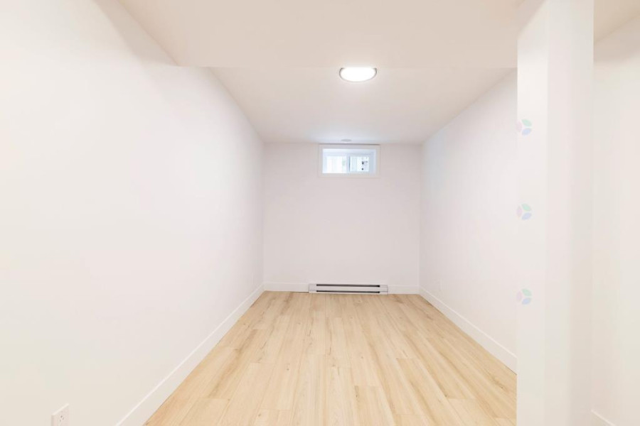 二楼设有四间舒适卧室。主卧配有步入式衣帽间与套间浴室,卫浴以现代陶瓷材质铺设,空间明亮实用。其余卧室布局合理,窗外景观优美。二楼另设有一间全浴室,方便全家日常使用。地下室为全装修空间,设有大型娱乐室、一间卧室、一间全浴室及一间带窗的办公区,亦可改作第五间卧室,灵活度高。地面铺设复合木地板,整体明亮干净,适合多功能使用。