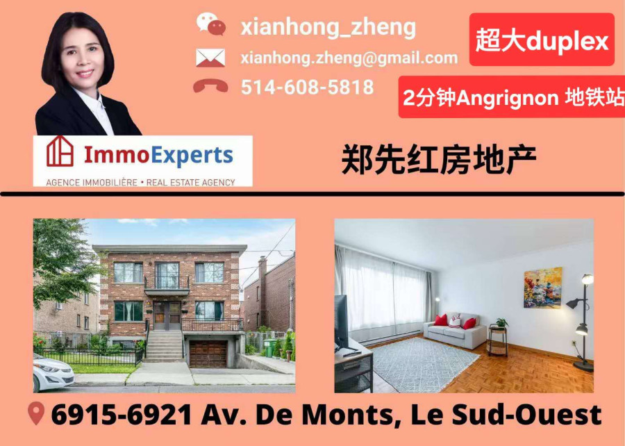 Angrignon 地铁站 1985年每层1385平尺,稀有超大独立duplex 出售!