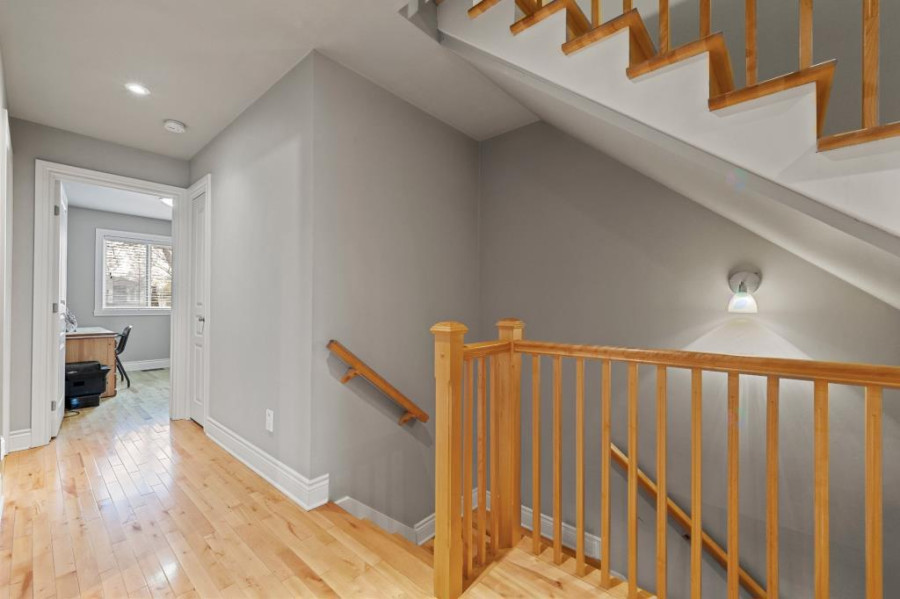 本栋现代联排别墅位于Mont-Royal市核心地段,周边配套齐全,步行可达Acadie地铁站、Université de Montréal MIL校区、商店与服务设施。物业外观以红砖立面搭配对称造型,呈现典雅大方的都市气质,适合注重生活便利性与社区氛围的买家。