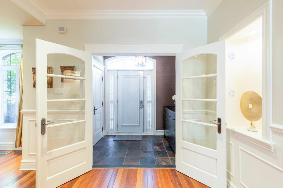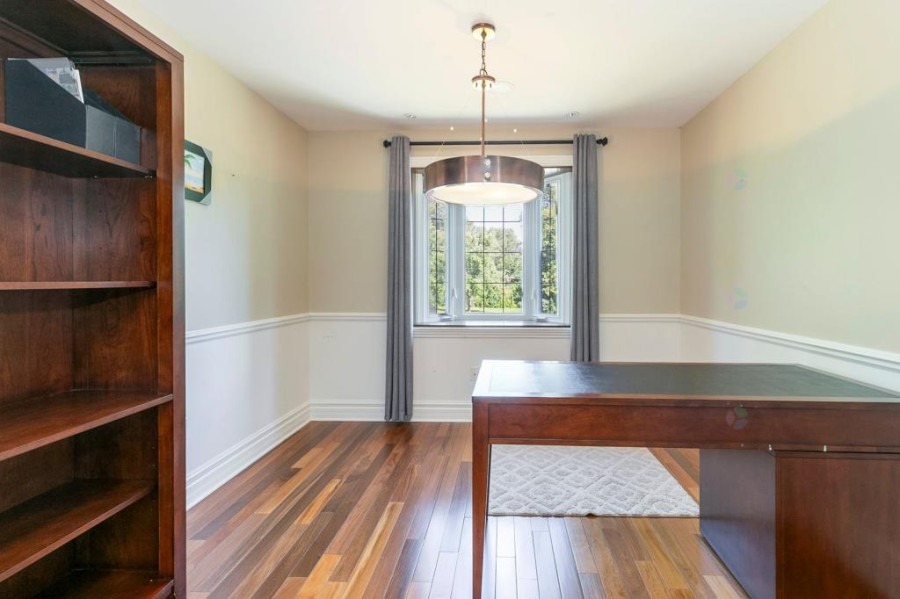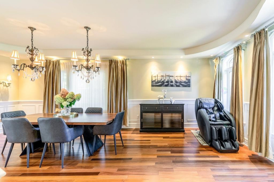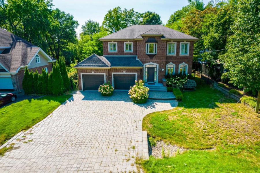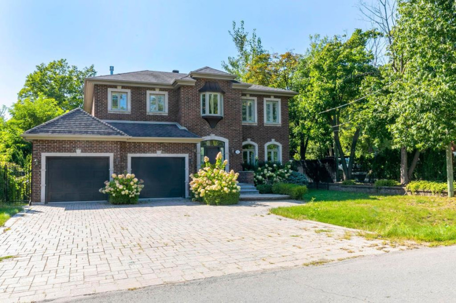 本栋高端独立住宅位于Beaconsfield市Forest Gardens宁静街区,周围绿树成荫,社区环境优雅。占地面积近14,000平方英尺,房屋建于2007年,外观以红砖与山墙屋顶构成,气势稳重典雅,前院铺设Pave-Uni石砖车道,门面宽阔大气。物业距离公园、托儿所、火车站与高速公路均在数分钟范围内,兼具生活便利性与高端居住氛围。
