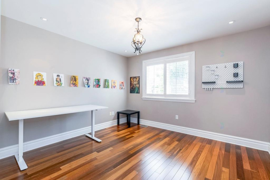 其余卧室均为木地板,空间方正,采光良好,适合作为儿童房、书房或多功能空间使用。地下室层高10呎,设有超大娱乐室、两间卧室、游戏室及完整浴室,空间利用灵活,可作为家庭影院、健身房、客房或青少年独立生活区。
