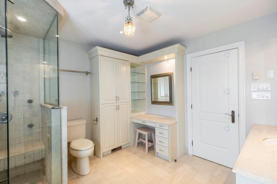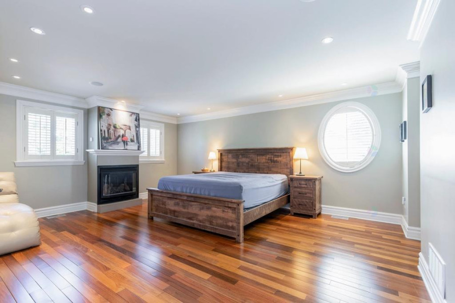 二楼共设四间卧室及一间办公室,主卧空间宽敞,配有燃气壁炉与大型步入式衣帽间。主卫浴采用地暖,设有独立淋浴与双洗手台。