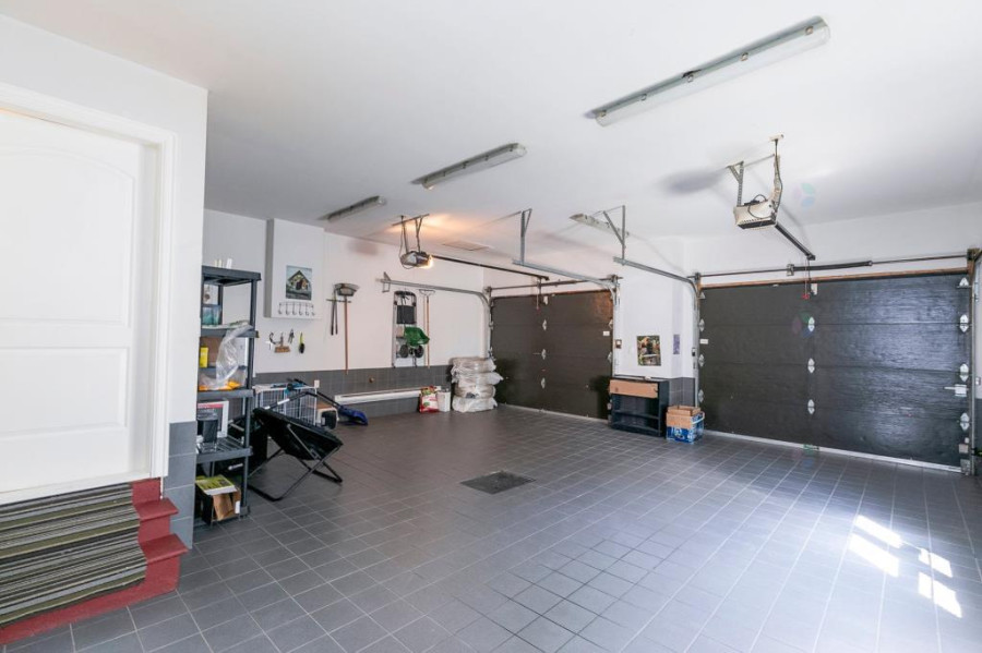 后院园景精美,设有地埋式加热盐水泳池与户外音响系统,周围围篱完整,私密性强,非常适合夏季休闲与户外聚会。前方为双车位车库搭配4车位车道,车库内铺设瓷砖地面并设有独立Mudroom区域,兼具实用性与整洁度。