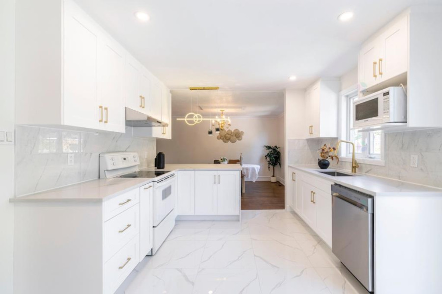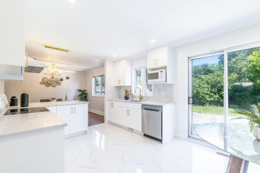 后院为宽敞的绿地空间,围篱完整,私密性良好,并设有露台,非常适合夏季户外聚会与休闲。前方双车库搭配4车位车道,停车空间充足,出入便利。本物业兼具Kirkland优越地段、现代翻新与实用格局,适合注重空间、生活便利与社区氛围的家庭买家。
