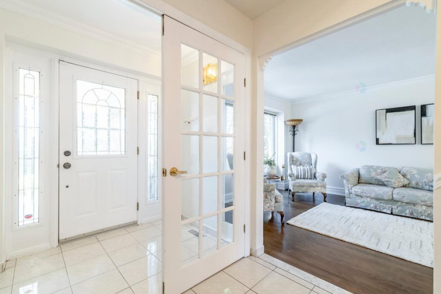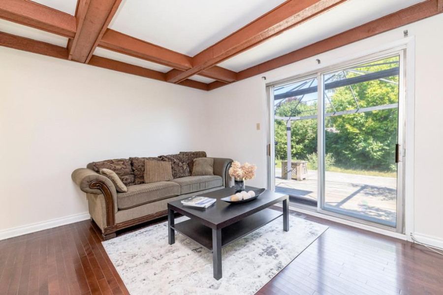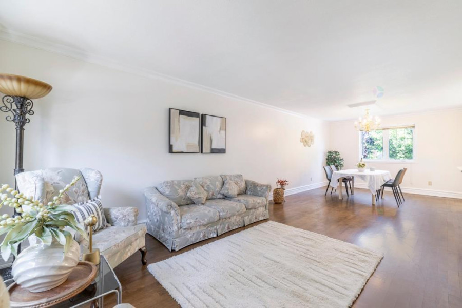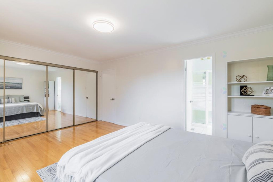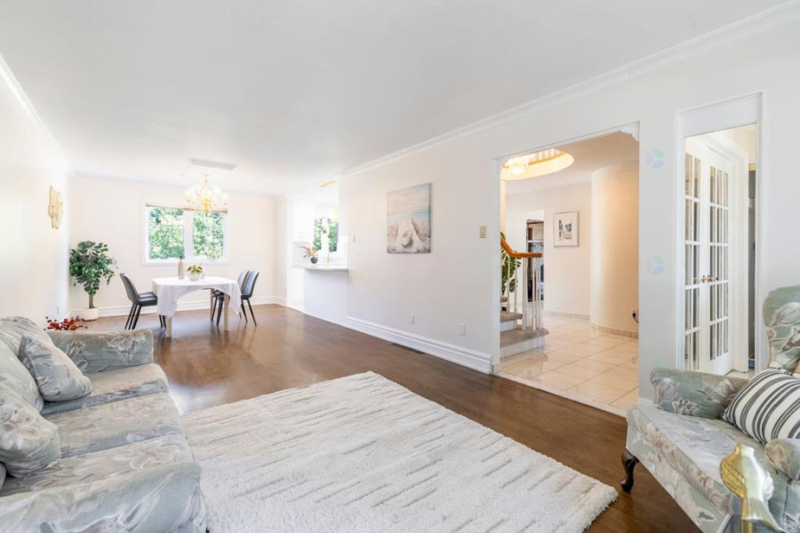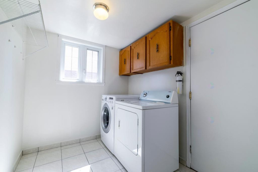主层格局分明,客厅与餐厅相连,铺设木地板,采光充足。厨房于近期翻新,设计现代实用,配有充裕的橱柜空间与开放式早餐区,并通过滑门通向后院露台。毗邻的家庭厅保留原木天花横梁与砖砌壁炉,空间温馨舒适,非常适合家庭休憩与聚会。主层另设洗衣房与盥洗室,生活动线便利。