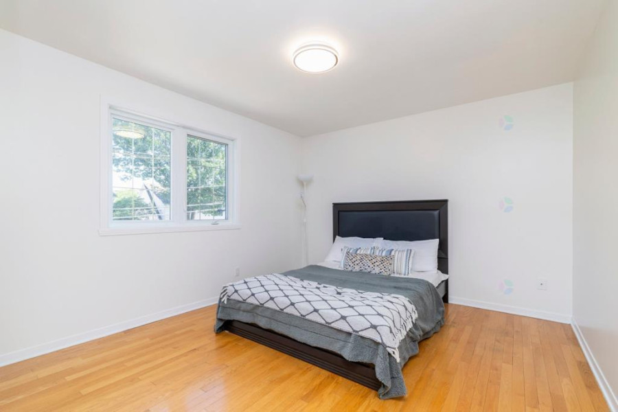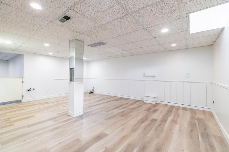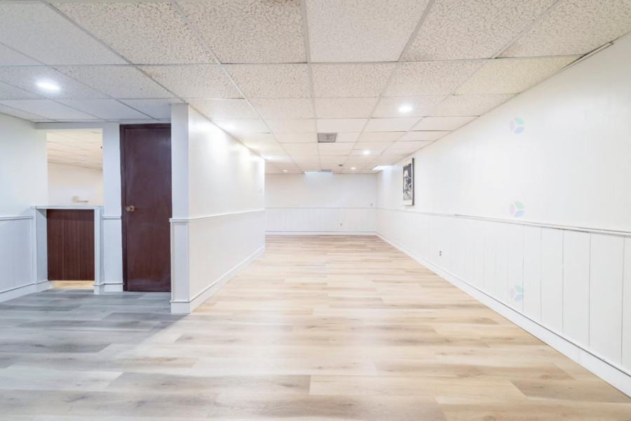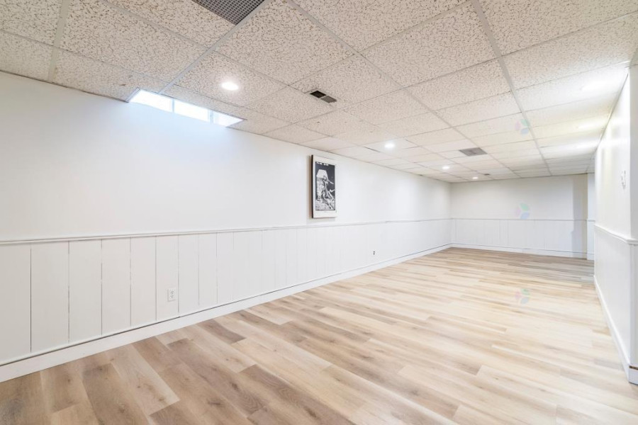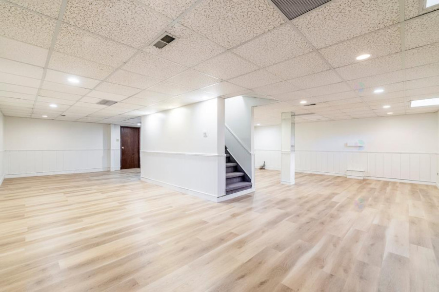 二楼设有四间卧室,主卧面积宽敞,配有套内卫浴与双衣柜,空间舒适。其余卧室均为木地板,布局方正,采光良好,可灵活用作儿童房、书房或多功能空间。二楼另有一间完整浴室,满足家庭成员日常使用。地下室为全装修空间,包含多个活动区域,可用作家庭娱乐室、健身区或额外储藏空间,灵活性高。