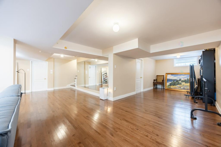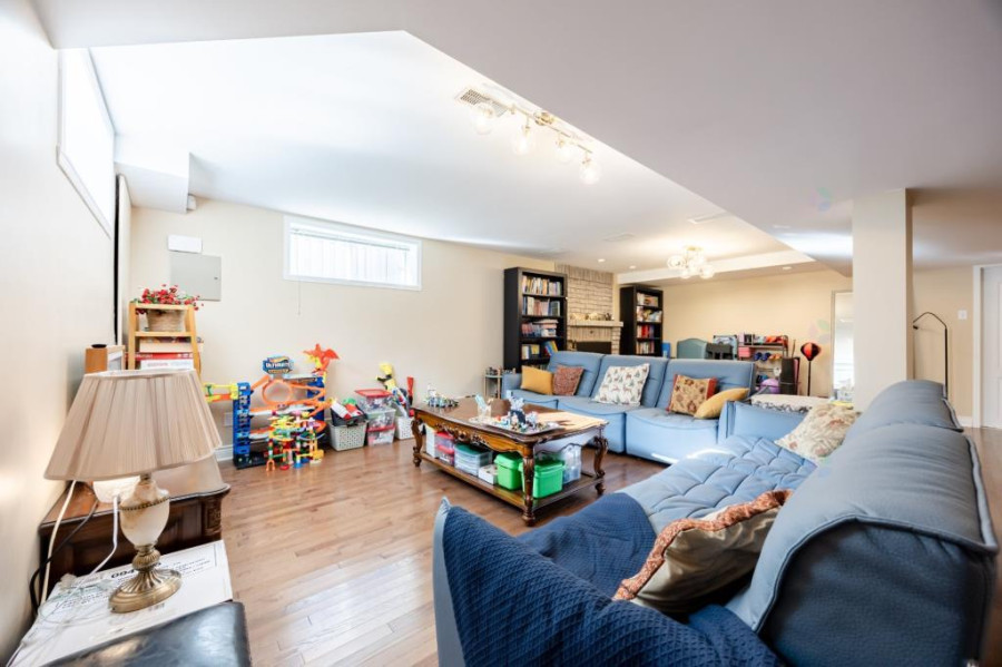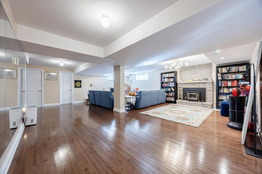 二楼配置四间舒适卧室,主卧附带完整卫浴与步入式衣柜,其余卧室面积适中,均有良好采光,适合作为儿童房、书房或客房。楼层另设一间全卫,浴室空间宽敞,维护良好。地下室为完全装修,设有一间大型多功能空间,可用作娱乐室、健身区或家庭影院,另有独立储藏室与一间额外浴室,为家庭提供更大使用弹性。结构干净整洁,适合不同阶段家庭需求。