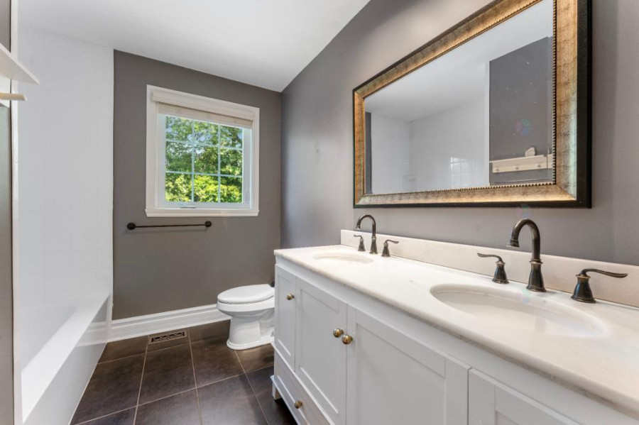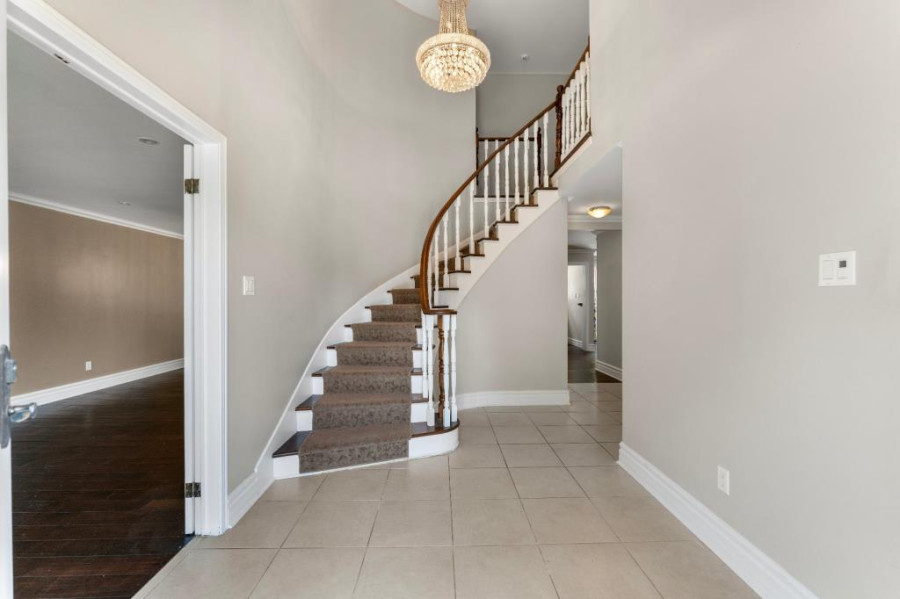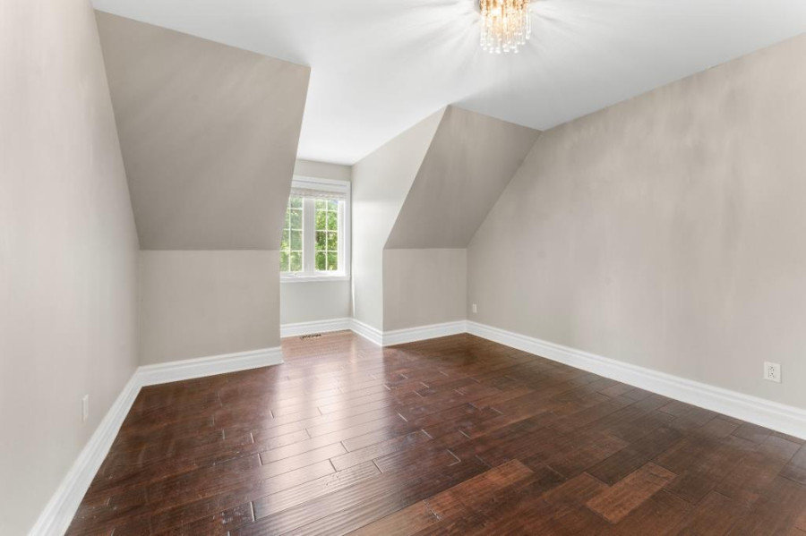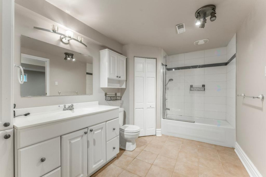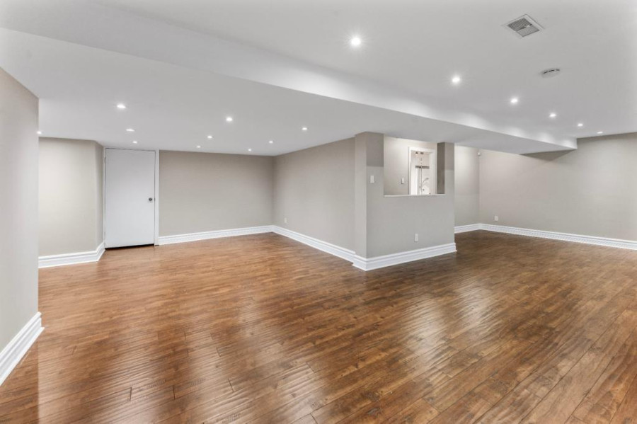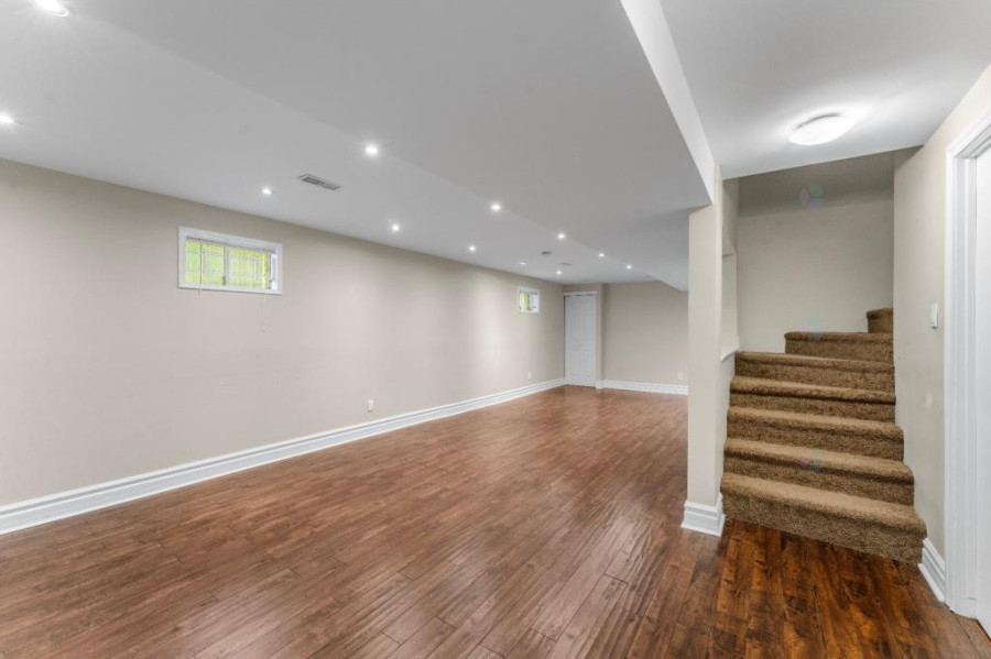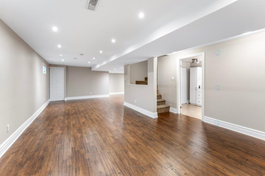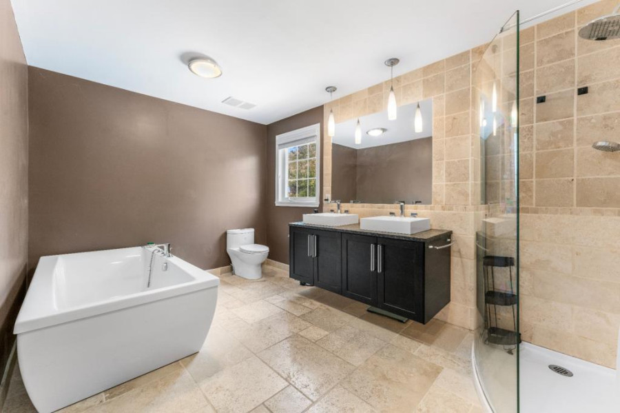 二楼设有四间卧室及两间完整浴室,主卧套间配有步入式衣帽间及加热地板的卫浴空间,设有玻璃淋浴间与独立式浴缸,营造出私密而奢雅的休憩氛围。其余卧室面积宽敞,采光明亮,适合儿童房、书房或多功能空间使用。地下室为全装修区域,设有宽阔的娱乐室、全浴室与储藏间,为家庭提供更多灵活的使用空间,可作为影音室、健身房或游戏区使用,功能完善。