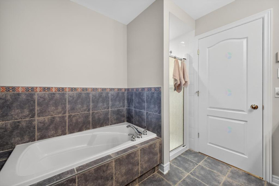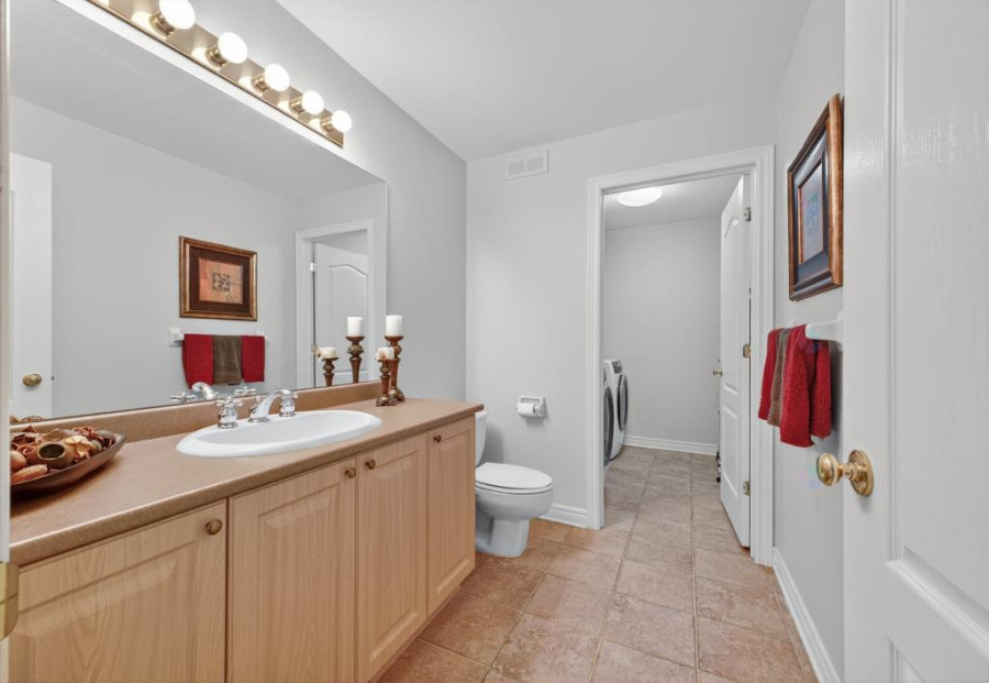 主层设有挑高门厅与宽敞客餐空间,客厅与餐厅铺设实木地板,窗明几净。厨房采用实木橱柜与花岗岩台面,连接明亮的早餐区与家庭厅,家庭厅内配新款Heatilator燃气壁炉(2023年更新),空间舒适温馨,适合家庭聚会与待客。主层另设访客洗手间与独立洗衣房,功能布局完善。