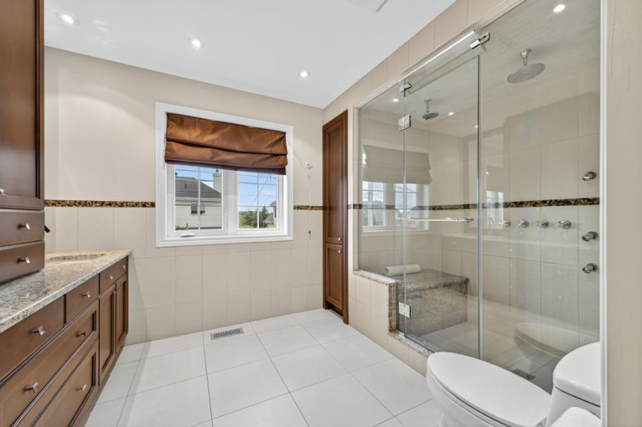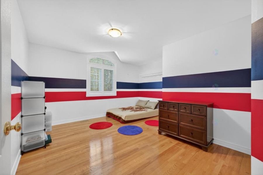 二楼为卧室层,设四间卧室与两间全卫。主卧宽敞明亮,带步入式衣帽间与翻新套间卫浴(2013年完成),内设独立浴缸、蒸汽淋浴与桑拿功能,私密度高且极具舒适感。其余卧室面积实用,采光充足,可灵活用作儿童房或书房。