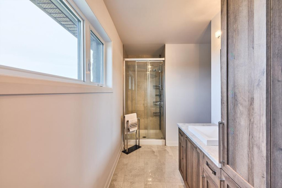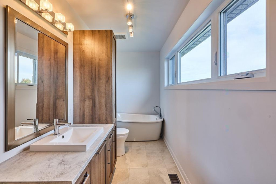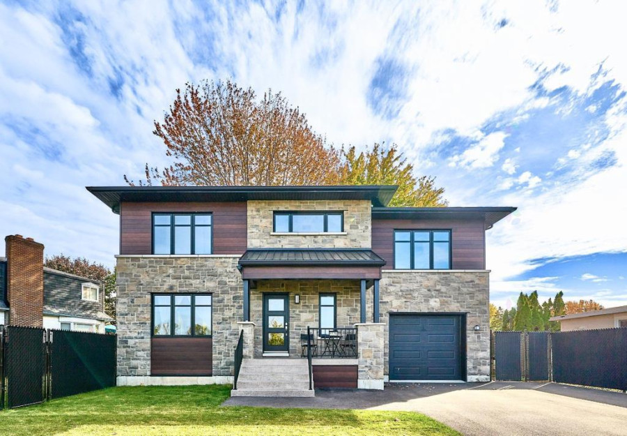本栋现代独立别墅位于西岛Dorval北区安静街段,前方无遮挡,环境清幽。2024年全新建造,附GCR建筑保修,外观采用石材与铝板立面,造型利落大气。屋内格局方正明亮,大面积落地窗引入自然光线,空间感开阔,整体设计兼顾现代审美与家庭功能性。