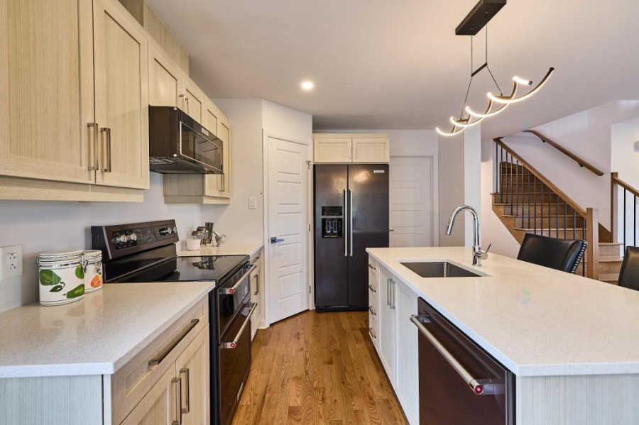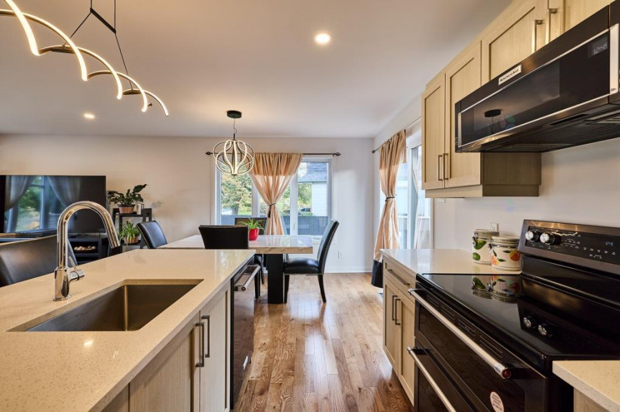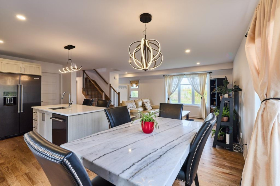 地理位置优越,距离Dorval高尔夫俱乐部约8分钟车程,近湖畔、码头、室内运动中心与两座冰场。开车约20分钟可至市中心,便捷通达20号、13号及520号高速,亦邻近学校、公园与Montréal–Trudeau国际机场,适合追求现代生活品质与交通便利的家庭买家。本房为全新交屋状态,带合法品质保证(legal warranty),拎包即可入住。