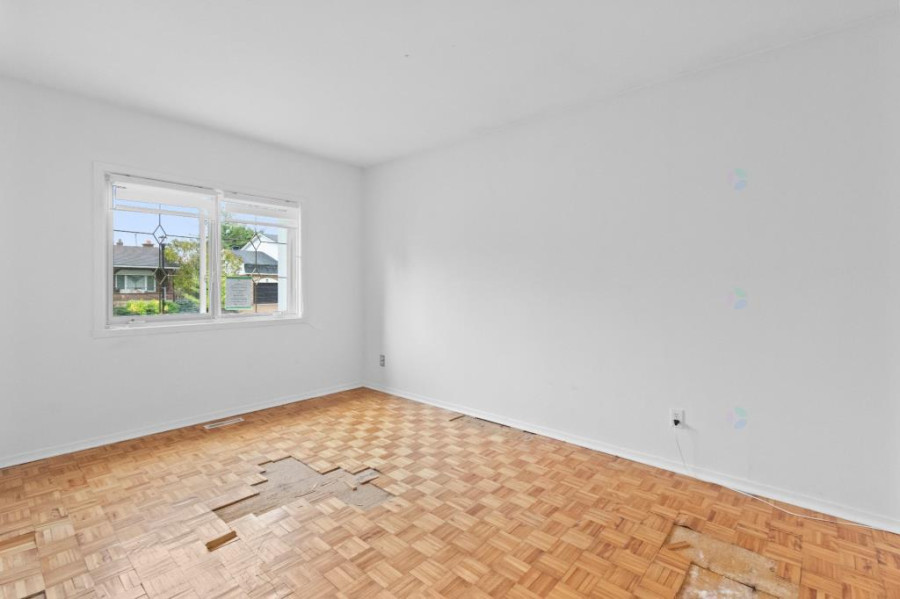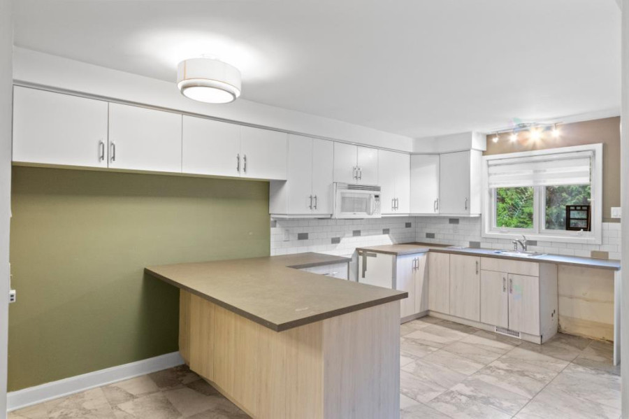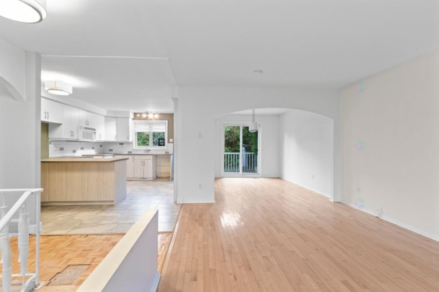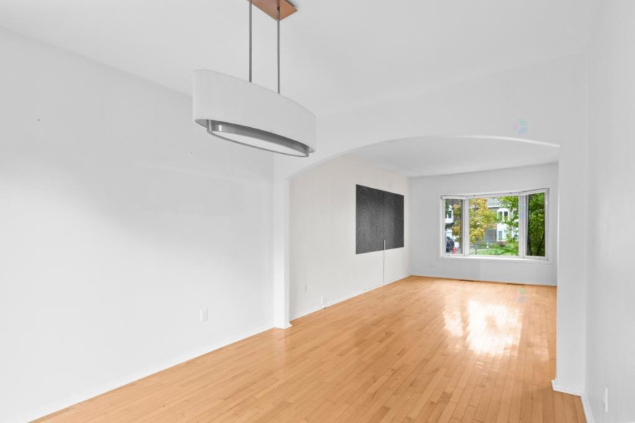 主层空间布局方正明亮,客厅与餐厅相连,铺设实木地板,大面积窗户令自然光线充盈全屋。厨房空间宽敞,配有充足橱柜及工作台面,适合家庭日常使用。主层设三间卧室与两间浴室,主卧带独立盥洗室,动线清晰,空间实用。地下室为全装修空间,设有额外卧室、家庭活动区、洗衣房与储藏间。层高充足,布局灵活,可作娱乐室、健身房或多功能工作区使用。