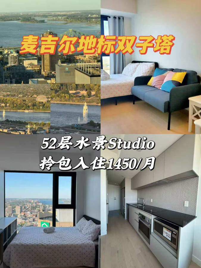 麦大附近有房出租 1450$studio双子塔