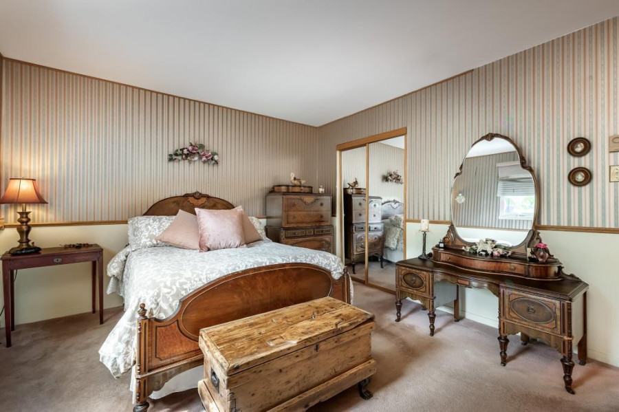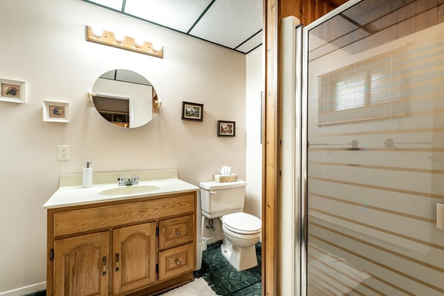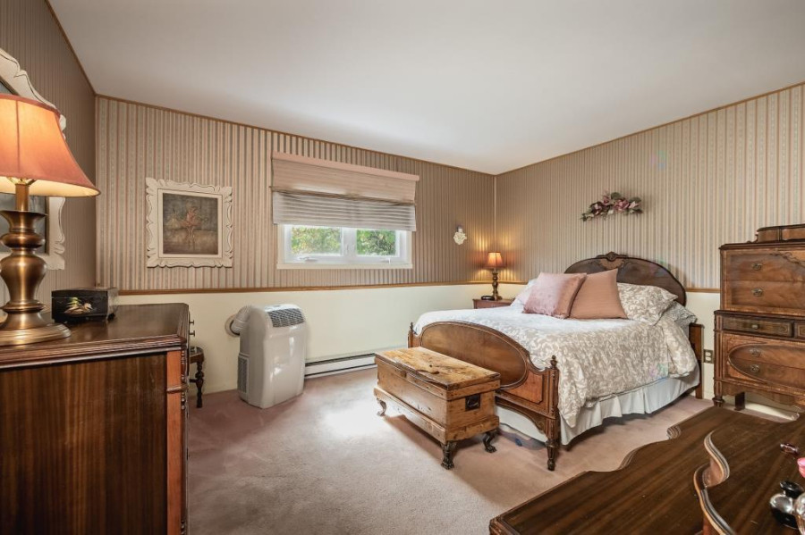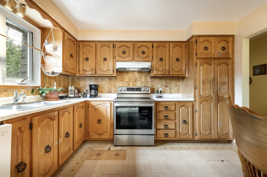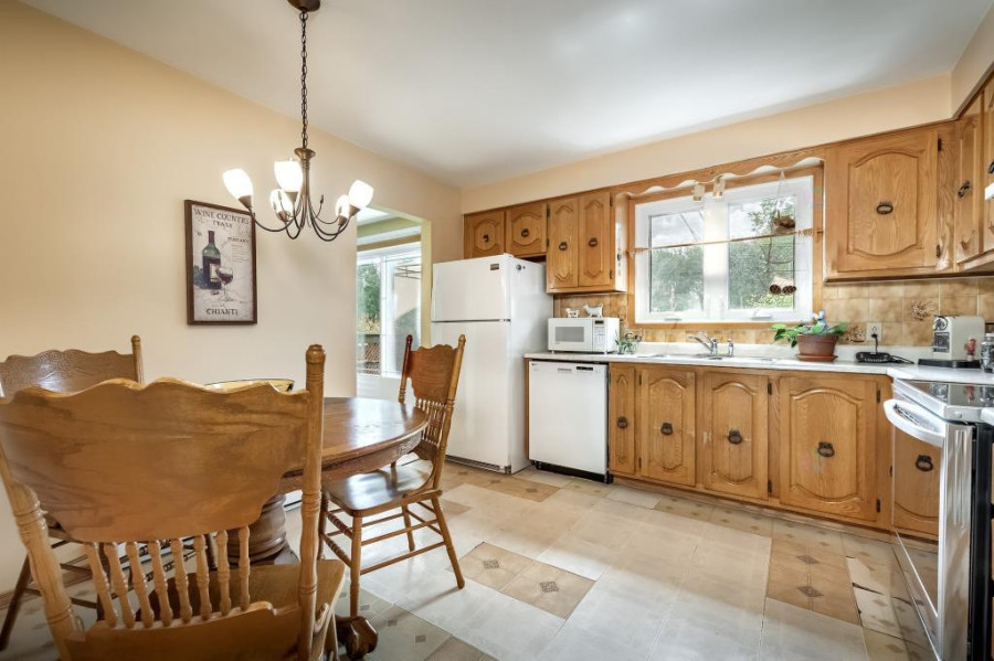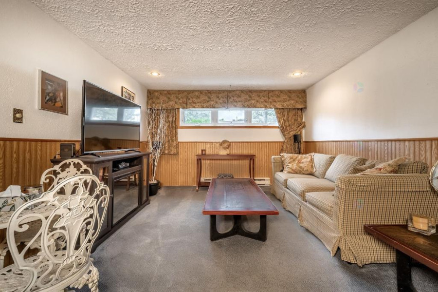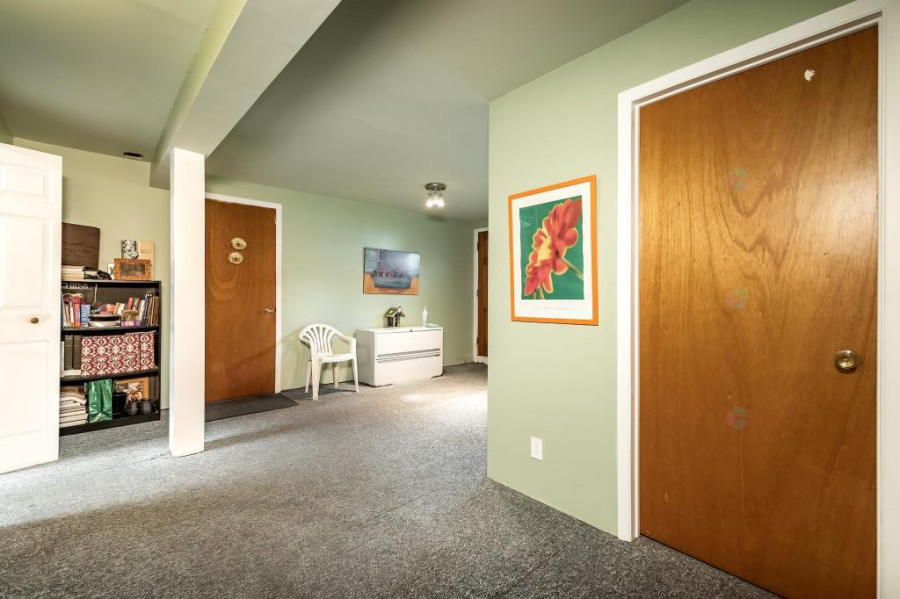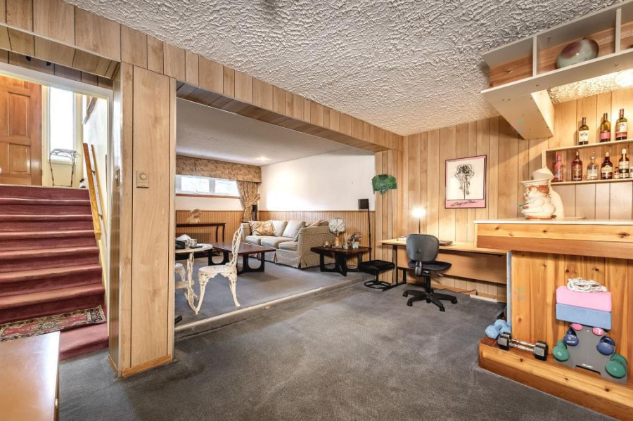 主层空间布局合理,客厅与餐厅铺设实木地板,采光明亮。厨房宽敞实用,配有大量橱柜及工作台面。卧室区设三间房间,主卧空间舒适,浴室经翻新,采用现代瓷砖与玻璃淋浴间,整体风格清爽。地下室为全装修空间,层高六英尺以上,设有家庭活动室、完整浴室及工作间,并配有独立外部出入口,适合多功能使用或额外生活空间。