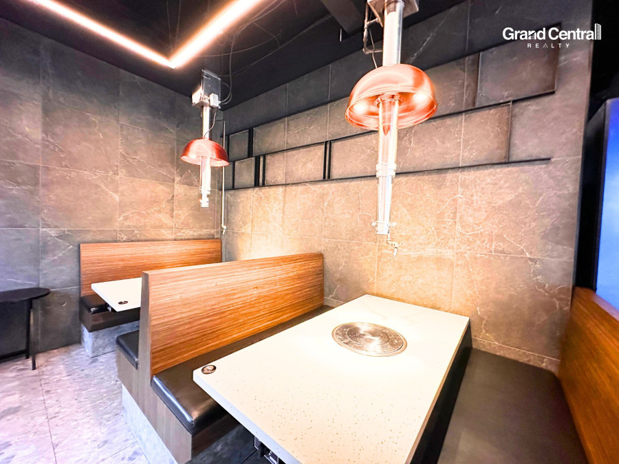餐厅面积1,402平方英尺,空间布局高效合理,配备全新设施,包括11张独立燃气烧烤桌,每张桌子均配有专用排烟罩。50座酒牌可营业至凌晨。租赁稳定,剩余租期8年,无拆迁条款,为买家提供安心保障。并提供充足街边停车位,便利顾客就餐。