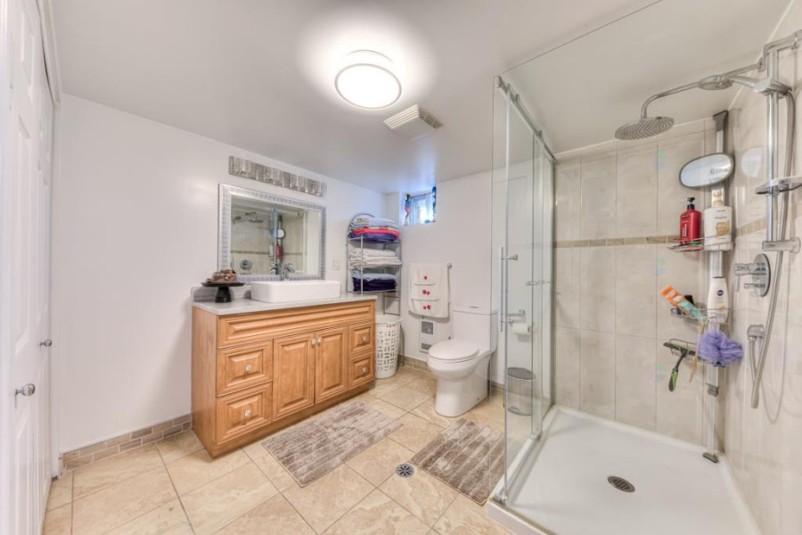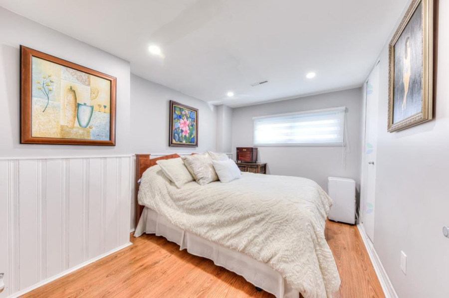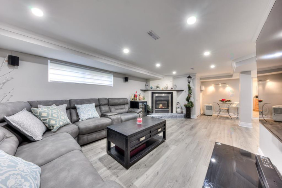 三层为私密休息区,包含宽敞的主卧室及另外两间卧室,布局舒适。主卧套房设计,内含专属化妆间,提升生活品质。同层设有全套瓷砖浴室,设计现代,设施齐全。地下室提供额外的家庭娱乐空间,设有一间宽敞的家庭活动室,配备舒适的木质壁炉,适合作为影音室或休闲区。此外还设有卫生间及储物间,功能齐全,满足多样化生活需求。