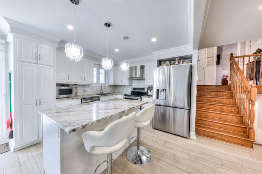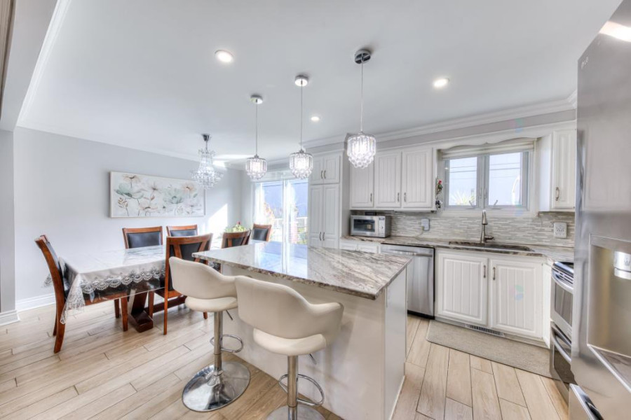 这栋精美翻新的错层独立屋坐落于Kirkland,有着现代化装修与宁静的社区环境。过去两年内完成的全面翻新涵盖厨房、浴室、屋顶及车道等区域,住宅内设5间卧室及2间卫浴,完美融合舒适生活与现代风格。社区紧邻40号高速公路、REM轻轨、多所中小学、 daycare、公园及购物中心,兼具宁静生活与极致便利。