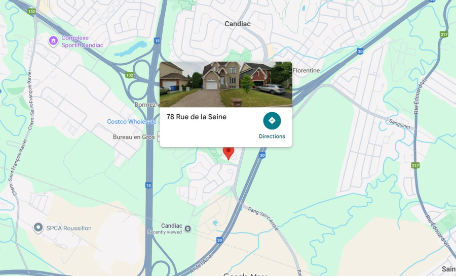 【地理位置】78 Rue de la Seine Candiac J5R 6Y3