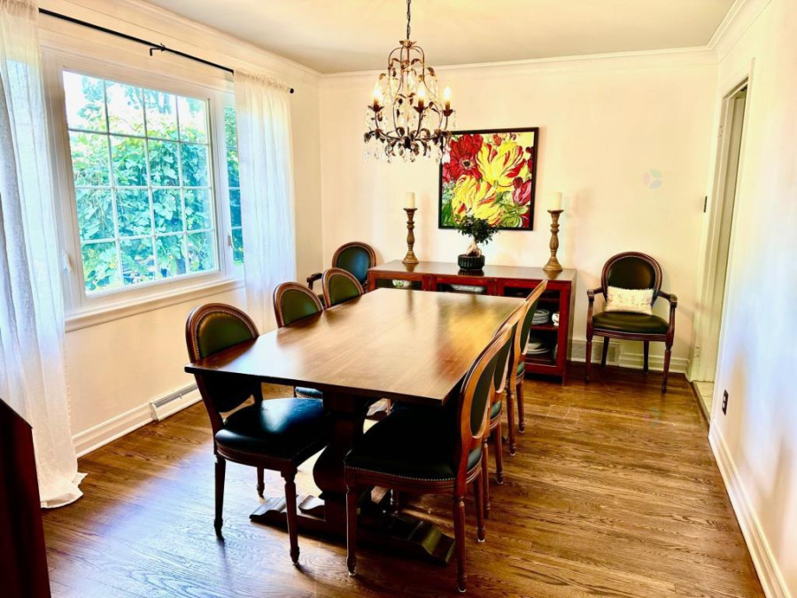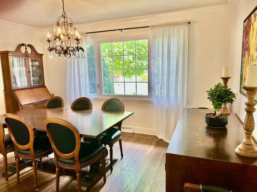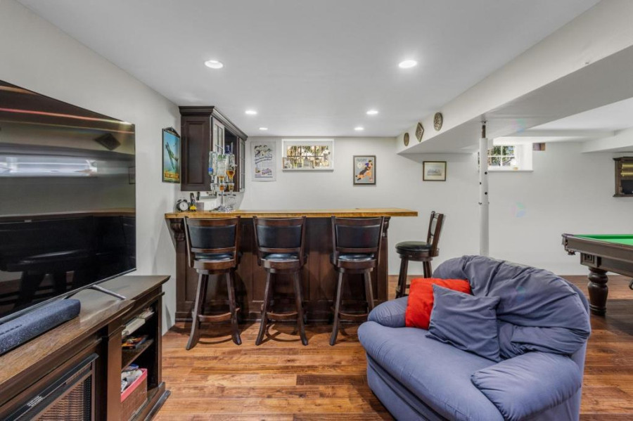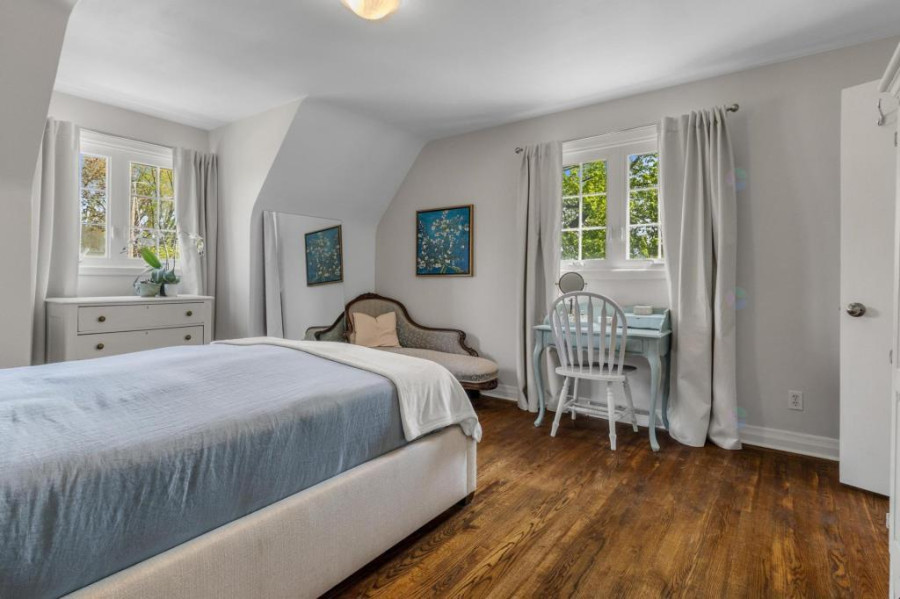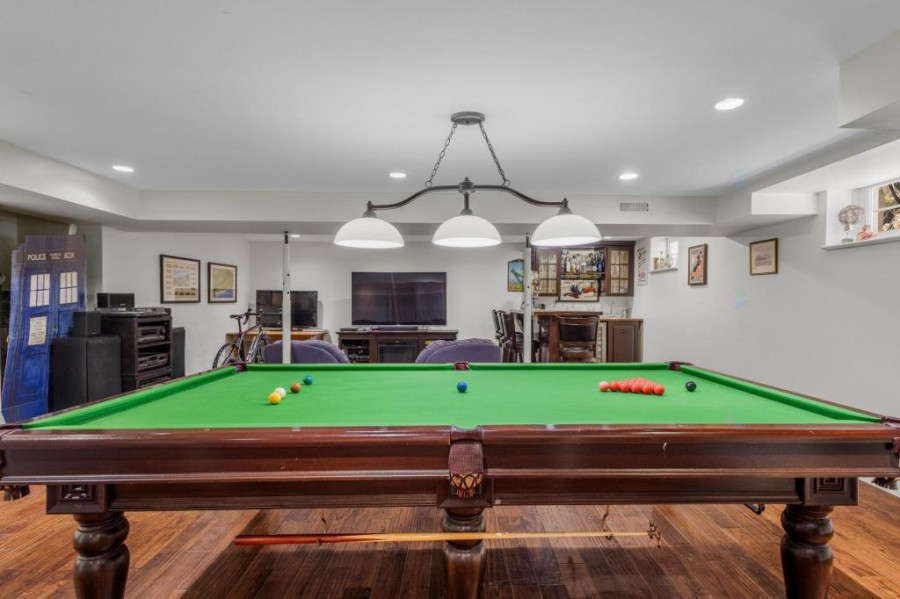 二层设有四间宽敞卧室,均铺设实木地板,采光充足。主卧套房设计豪华,配备独立的步入式衣帽间及全新装修的套内卫浴,提供静谧舒适的休息空间。家庭浴室同样经过翻新,干湿分离设计实用便捷,精致的装修细节处处体现对品质生活的追求。地下室为全装修空间,提供丰富的娱乐功能区,包含休闲区、健身房及实用工作间,全部铺设耐磨复合地板,布局灵活多变。该层还设有独立的洗衣房,功能齐全,为您提供额外的家庭活动空间,非常适合作为家庭影院、健身区域或客房使用。