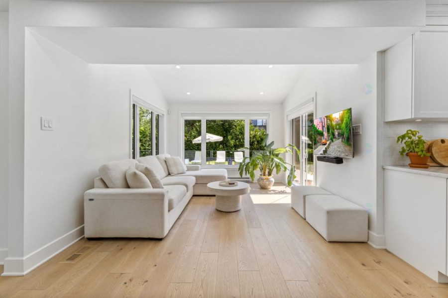 主层采用开放式概念设计,客厅与餐厅区域开阔流畅,白橡木地板与充足采光共同营造出明亮温馨的家居氛围。厨师厨房配备全套高端电器、定制木制橱柜、优雅黄铜饰件及集成了葡萄酒冰箱的咖啡与酒吧区,兼具美学与功能性。此层还设有一间舒适的书房/休息区、实用化妆间及便利的洗衣房,动线设计精巧,充分满足现代家庭的生活需求。
