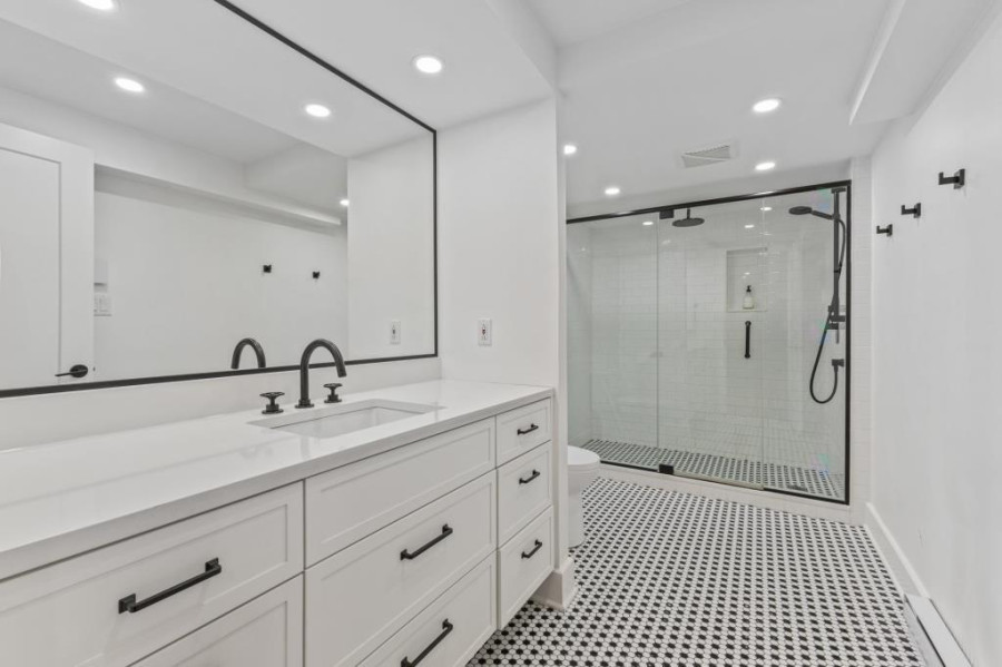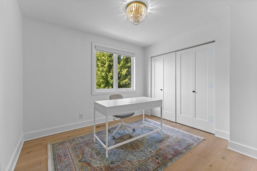 二层为私密休息区,四间卧室均铺设实木地板,布局舒适。主卧套房设计豪华,配备独立的步入式衣帽间及全套卫浴,提供静谧的休憩体验。另外三间卧室大小适中,采光良好。此层还设有两间全套卫浴,均采用Kohler洁具及高端装修材料,细节之处尽显精致,为全家营造水疗中心般的舒适体验。地下室为全装修空间,提供了一个灵活的多功能房间,非常适合用作家庭办公室、健身区或额外休息区。此层还设有第五间卧室及第三间全套卫浴,私密性强,非常适合作为客人套房或青少年独立空间。此外,超大的储物区确保了家庭的收纳需求。