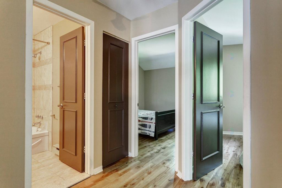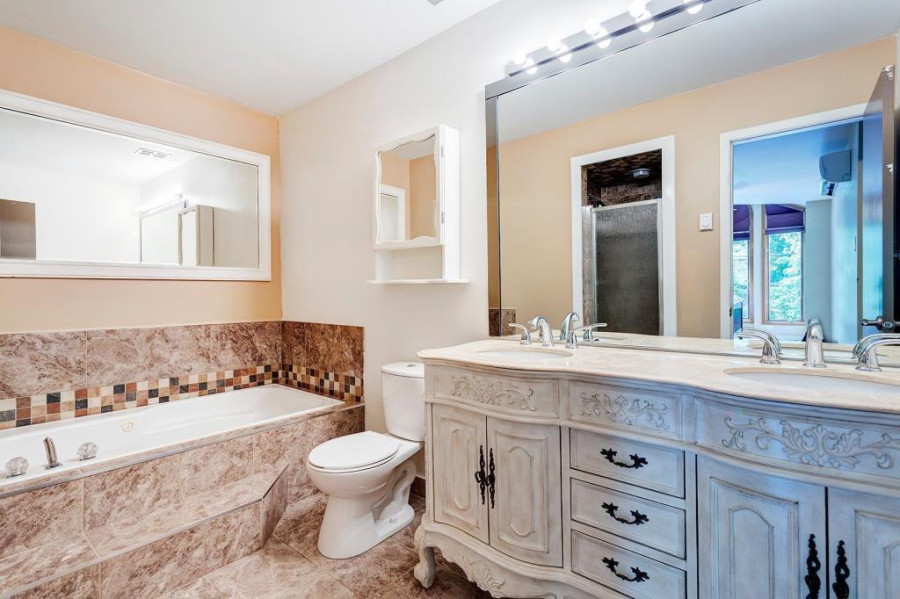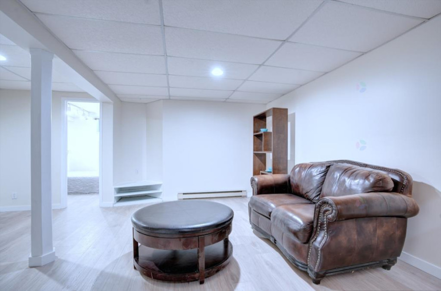 二层为私密休息区,三间卧室均铺设实木地板,采光良好。主卧套房设计,配备独立的套内卫浴,并设有分离式淋浴间,提升了居住的舒适性与私密性。同层还设有第二间全套家庭浴室,满足全家人的日常使用需求,整体环境宁静而舒适。地下室提供了额外的灵活生活空间,设有一间宽敞的娱乐室及第四间卧室,全部铺设耐磨复合地板,非常适合作为家庭影院、健身区或客房使用。