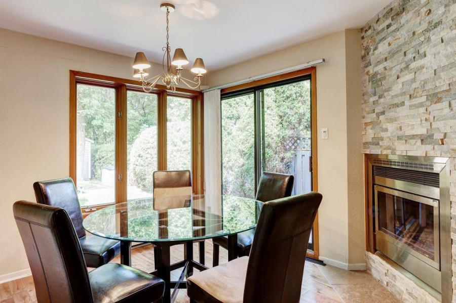 主层布局温馨实用,客厅铺设实木地板并设有舒适的木质壁炉,营造出温暖的家庭氛围。餐厅与厨房区域铺设易清洁的陶瓷地砖,功能分区明确。此层还设有一间实用的化妆间及独立的洗衣房,动线设计合理,充分考虑了日常生活的便捷需求,让家务与休闲互不干扰。