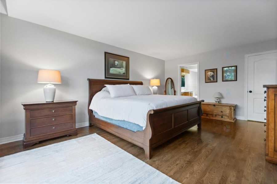 主层采用开放式布局,入口玄关衔接明亮的客厅与餐厅,厨房配备大型中岛及早餐区,三面环窗,采光极佳。家庭房设有温馨的木制壁炉,与厨房、早餐区贯通相连,非常适合家庭聚会与招待宾客。此层还设有化妆间及洗衣房,功能齐全,动线流畅。