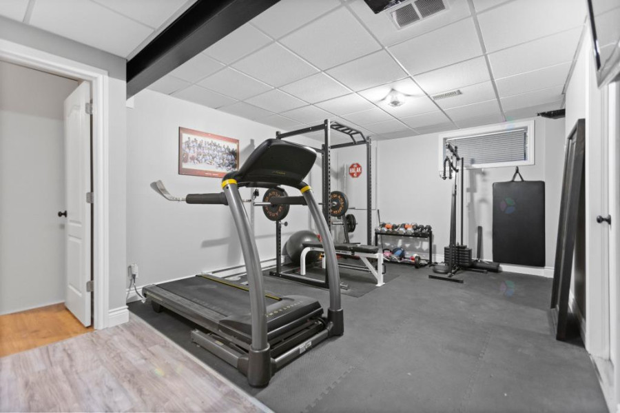 二层设有四间卧室,包括一间配备独立卫浴和步入式衣帽间的主卧室,其余三间卧室中两间也配有步入式衣柜,储物空间充足。走廊采用U型设计,配有大面积采光窗,明亮通透。全屋卫浴设计精致,主卫配备独立淋浴,舒适实用。地下室为全装修空间,设有宽敞的家庭娱乐区、健身房及灵活使用的多功能区域,适合作为家庭影院、办公室或儿童游戏区。此外还包括一间卧室、全套浴室、储藏室及冷库,并可直接通往车库,极大提升了使用的便捷性与隐私性。