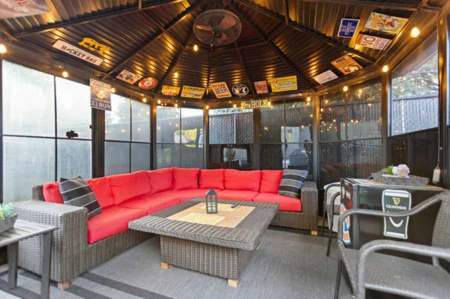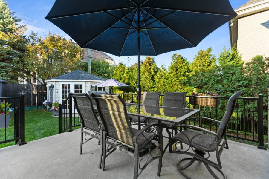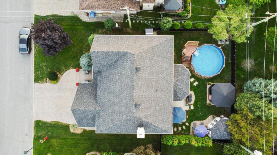后院为真正的私人绿洲,配备地上泳池、凉亭与休闲区,营造出度假般的放松氛围。院落布局平整,围栏维护良好,兼具美感与实用性,是夏日聚会与日常休憩的完美场所。
