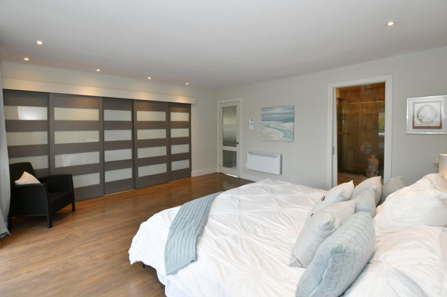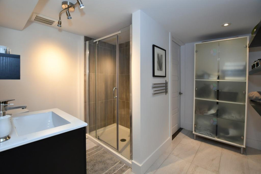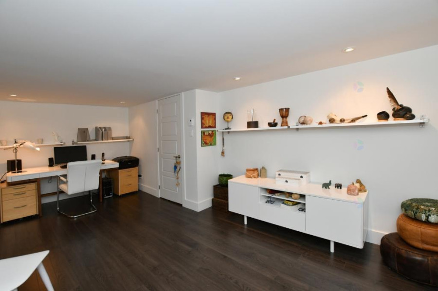 主层采用开放式概念设计,全天采光充沛。客厅与餐厅贯通衔接,铺设实木地板,空间温馨明亮。厨房配备超大型中岛、齐全家电及充足储物,现代感十足。家庭房内置精美壁炉,营造出舒适惬意的聚会氛围。主卧室宽敞雅致,带独立化妆间,另一间卧室亦铺设木地板,适合用作儿童房或书房。