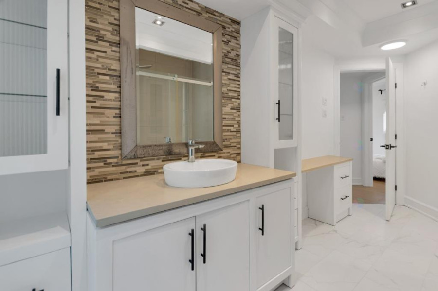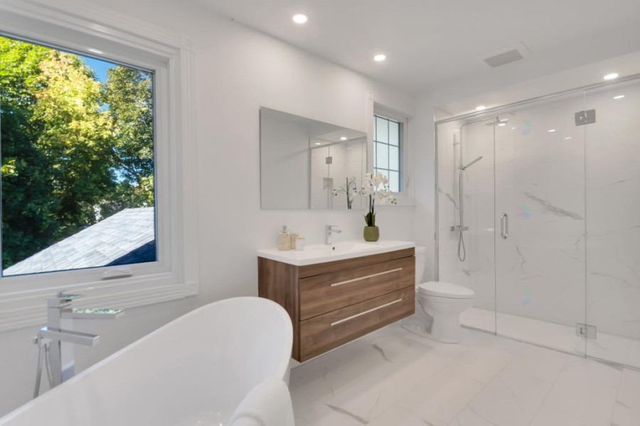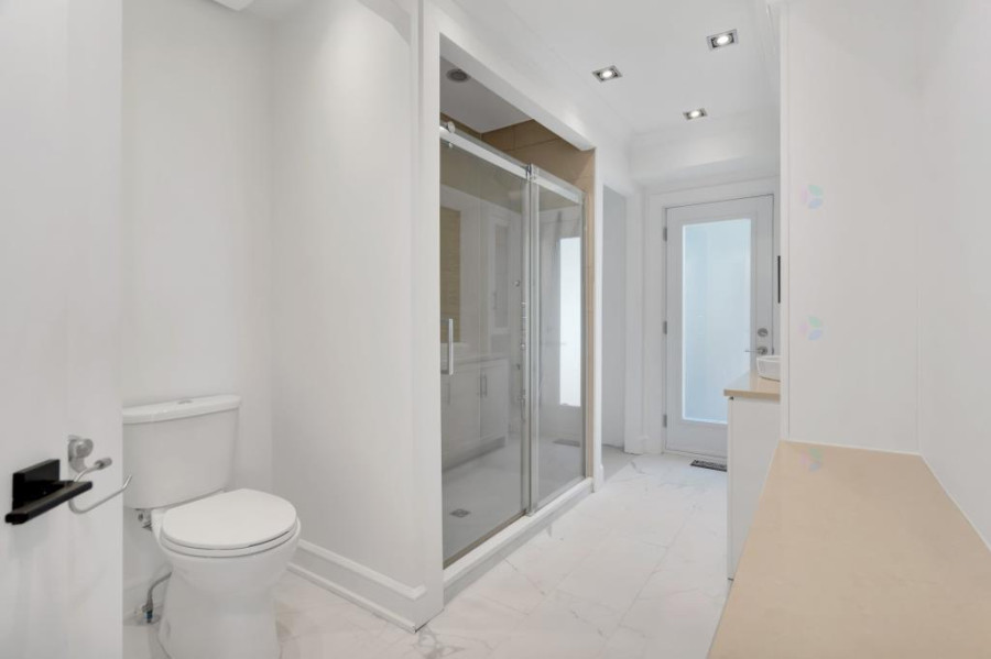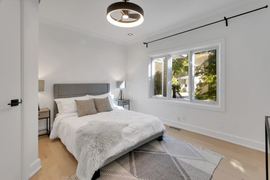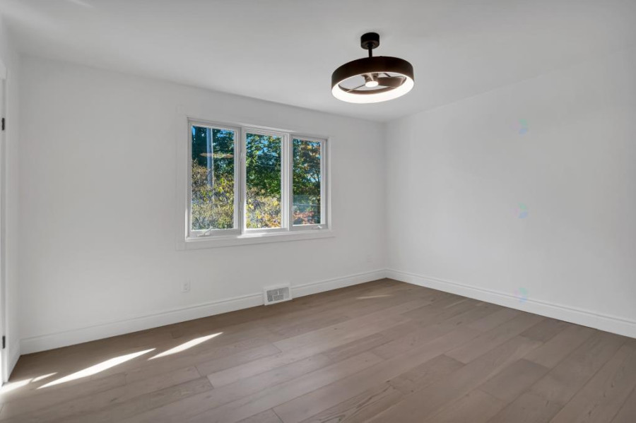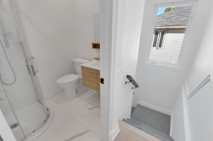 二层设三间宽敞卧室,包含一间带独立卫浴的主卧室,卫浴经精心翻新,配备独立浴缸与淋浴间,品质卓越。另外两间卧室均铺设木地板,储物空间充足,家庭生活舒适私密。地下室设有一间宽敞家庭娱乐室及第五间卧室,地面铺设防水材料,功能多样,可根据需求打造为影音室、健身区或儿童游戏空间。
