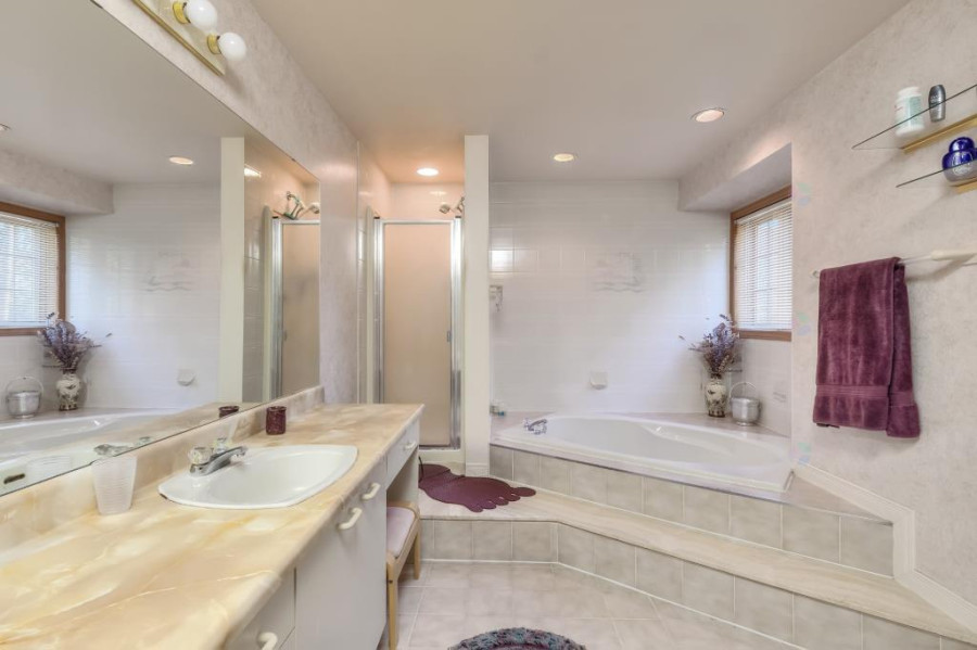 主层布局舒适实用,客厅与餐厅铺设镶木地板,温馨典雅。厨房与早餐区铺设油毡地面,通过滑动门直通后院露台,采光与通透性俱佳。家庭房配备壁炉,铺设复合地板,营造出温馨的家庭休闲氛围。