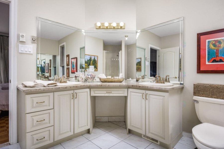 上层设四间卧室,主卧室配备步入式衣帽间及独立卫浴,私密舒适。另外三间卧室布局合理,第二间全套浴室经2021年翻新,设计现代实用。地下室为全装修空间,设有宽敞家庭娱乐室及第五间卧室,铺设陶瓷地砖,空间灵活多变,完美适合家庭休闲与接待客人。