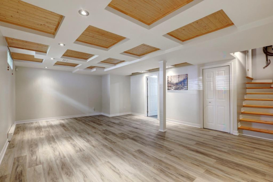 上层设四间卧室,其中一间位于独立错层,确保私密性。主卧室套房配备水疗风格卫浴,含独立浸泡浴缸、玻璃淋浴间及石英石台面梳妆台,尽显奢华品质。地下室为全装修空间,设带格子天花板及射灯的娱乐室、两间卧室及全套卫生间,完美适合客人或居家办公需求。