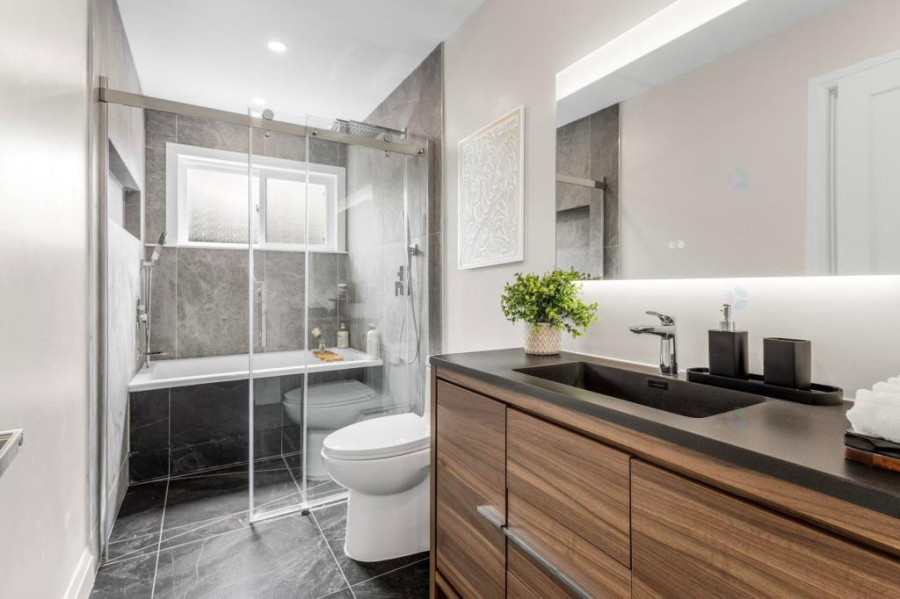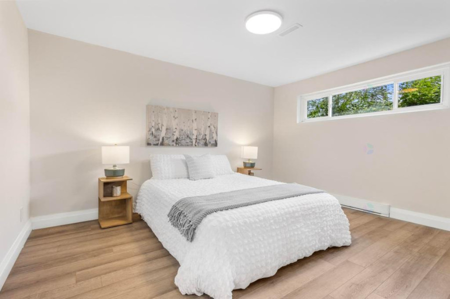 上层三间卧室布局合理,包含一间配备双衣柜的主卧室,独立卫浴设计现代,细节体现品质。地下室为全装修空间,设有家庭厅及第四间卧室,全套浴室铺设地暖,空间灵活实用。