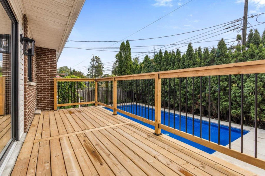 后院为专业景观设计庭院,配备泳池及宽敞露台,成熟绿植确保私密,完美适合夏季娱乐与休闲聚会。房屋配备齐全家具,真正实现奢华与舒适兼备的现代家庭生活体验。