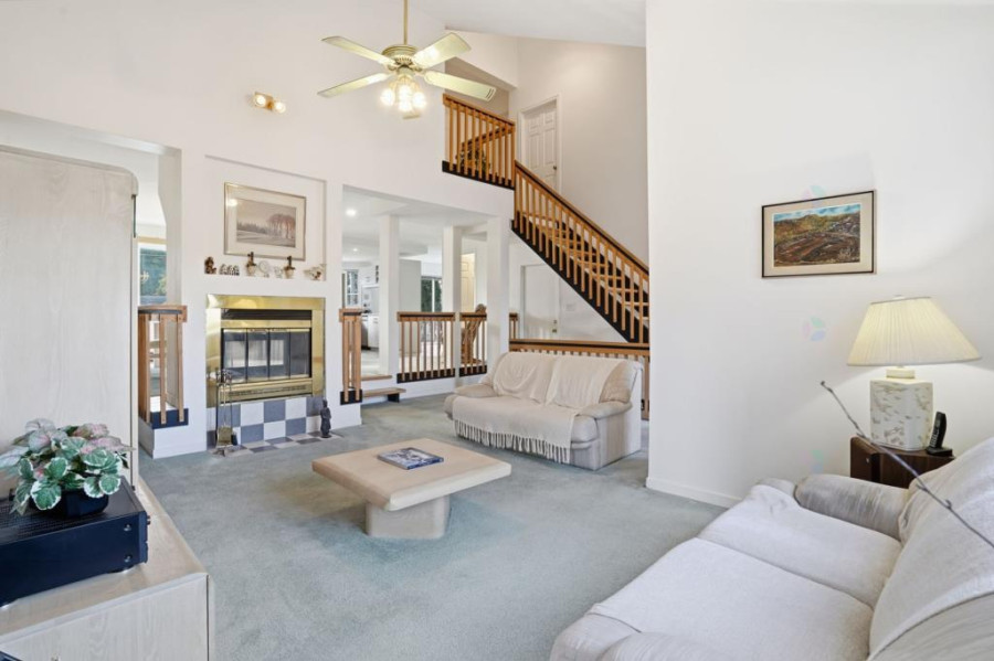 主层采用开放式布局,挑空客厅与餐厅共享双面燃木壁炉,营造温馨大气的家庭氛围。厨房与早餐区经过2022年翻新,功能实用,化妆间内置洗衣区,布局合理便捷。