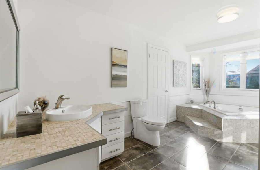 上层设三间卧室,包含一间宽敞主卧室,布局舒适。全套浴室配备独立淋浴间、浴缸及化妆区,满足家庭多样化需求。地下室为全装修空间,设有宽敞家庭厅、娱乐区及预留第二浴室管道的房间,布局灵活实用。