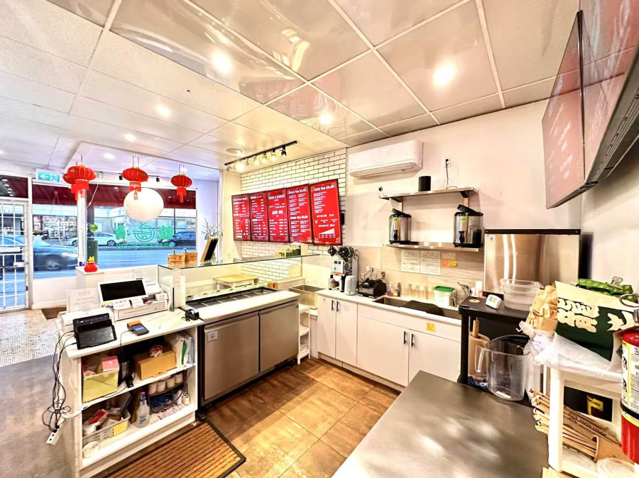 728 sqft. This well-maintained space is fully equipped with ventilation system, prep area, and refrigeration units, allowing for a smooth transition and immediate operation. The layout is efficient and suitable for a variety of concepts, including Asian cuisine, fast-casual dining, dessert shop, or fusion food. Surrounded by dense residential communities, offices, and continuous foot traffic, the business benefits from strong exposure and consistent customer flow. Ideal for owner-operators or investors seeking a reliable and easy-to-manage location in Vancouver. Flexible concept, continue the existing menu menu or introduce your own brand. Great opportunity to secure a high-demand Kingsway commercial spot with strong long-term potential.