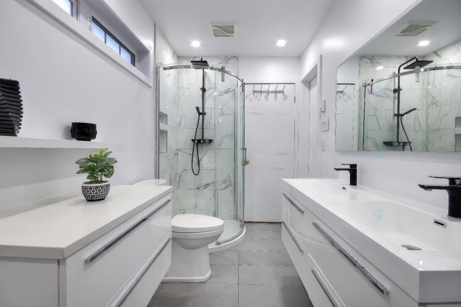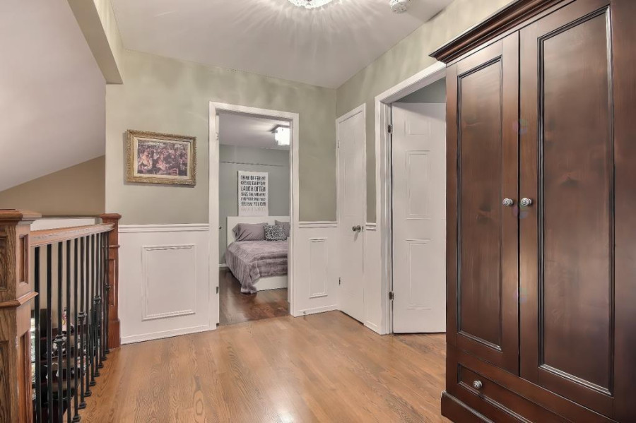 二楼设有三间面积宽敞的卧室,主卧尺度舒适,整体布局强调私密与安静。主层及二楼均配置卫浴空间,满足家庭成员不同作息需求,使休息区域保持良好的独立性与居住舒适度。地下室层高充足,已完成装修,设有家庭娱乐区与多功能活动空间,并预留大面积储藏与冷藏室区域,可根据需要打造办公室、健身区或额外卧室,功能弹性明显优于同类型住宅。