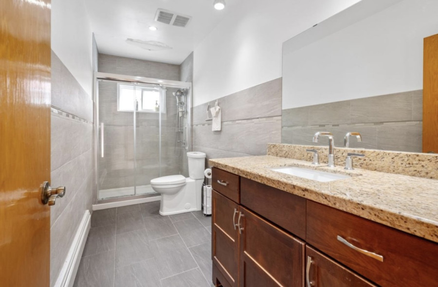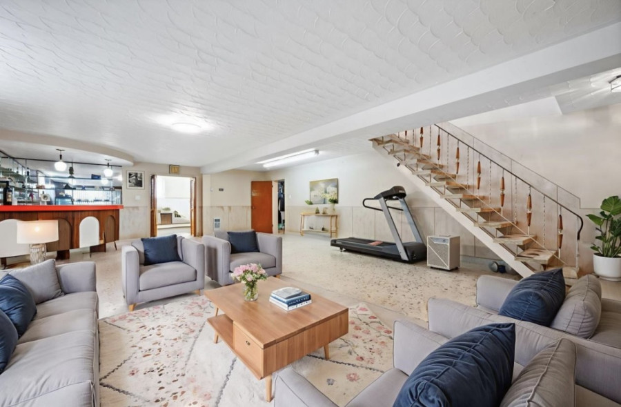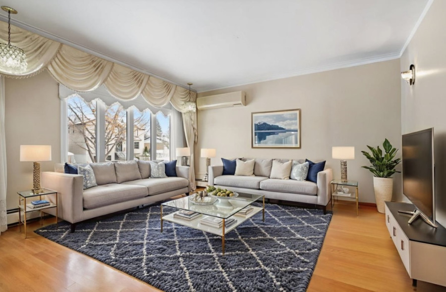 living room with oversized windows, letting in an abundance of natural sunlight, 2 full bathrooms, and a cozy family room with