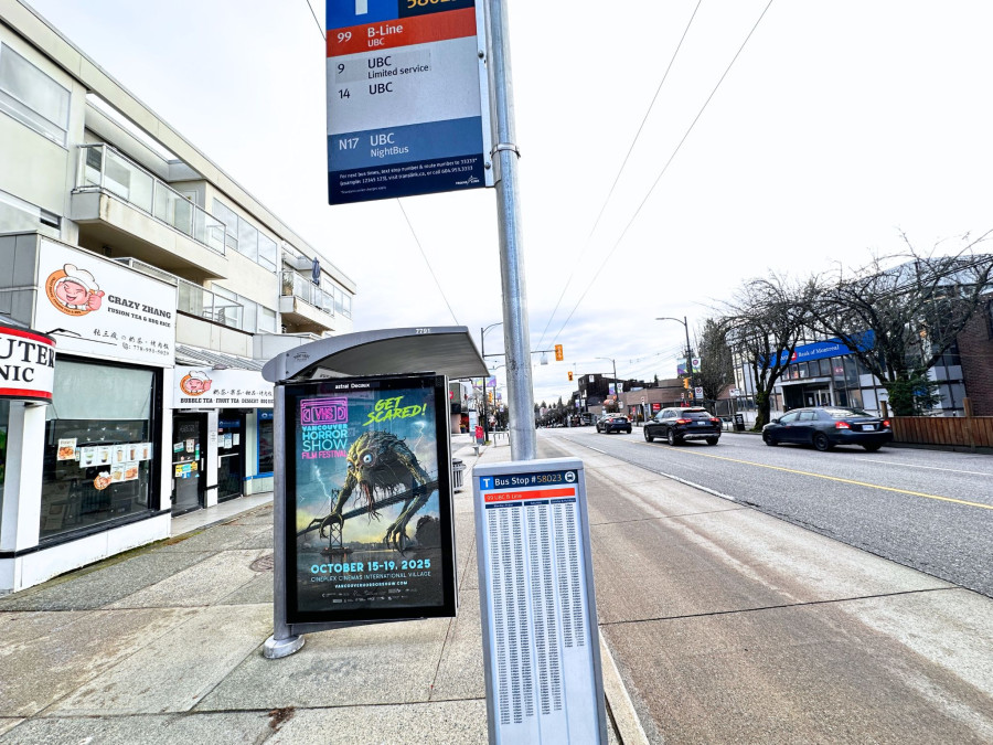 店铺位于 繁忙路口,街边曝光率极佳,紧邻 公交站(9号和14号线直达UBC),吸引稳定客流,包括 本地居民、上班族和学生。
