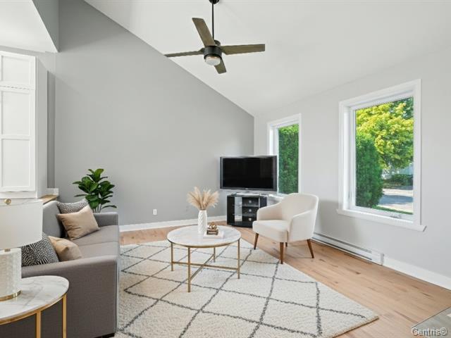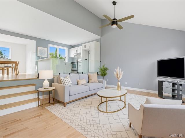 这栋精美的独立住宅经过全面翻新(entièrement rénovée),呈现出宽敞开放式布局(aire ouverte),铺设精美的实木地板(planchers de bois franc),并采用高端品质装修(finition haut de gamme),展现卓越的居住品质。