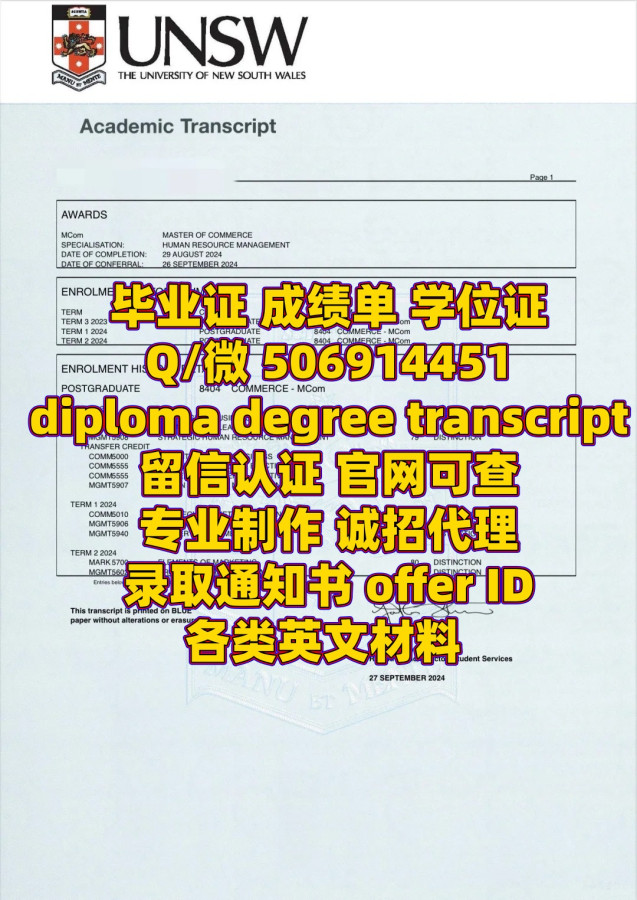 毕业证 成绩单 学位证书 Q/微:506914451留信认证 官网可查