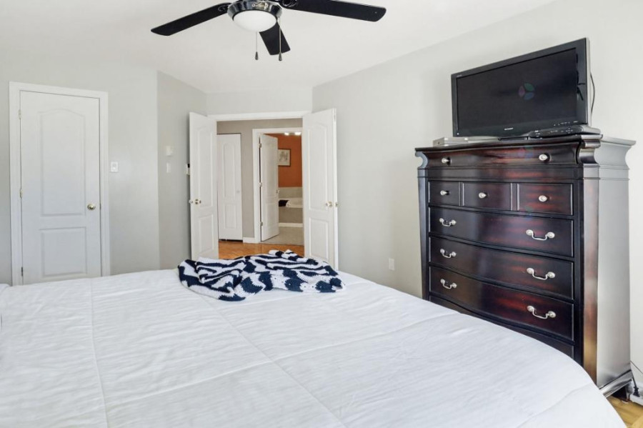 二楼设有两间卧室,空间比例合理,主卧宽敞明亮,并配备一间面积较大的完整卫浴,带独立淋浴与浴缸,满足家庭日常使用需求。