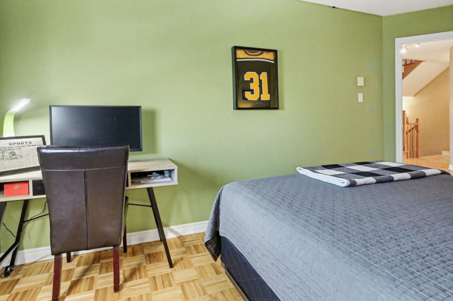 本套联排别墅位于Saint-Laurent热门社区 Bois-Franc(新圣劳伦)区域,社区规划成熟,环境整洁有序,生活配套完善。周边邻近公园、自行车道、学校及各类商业设施,同时可便捷连接主要高速、公交通勤系统及REM轻轨,生活便利度与通勤效率兼具,属于近年来持续受欢迎的优质居住区域。