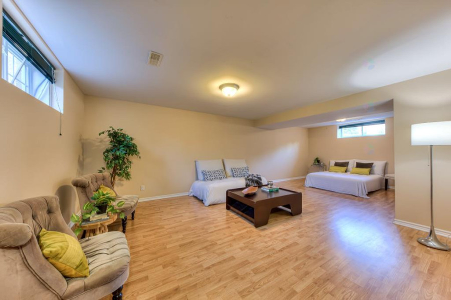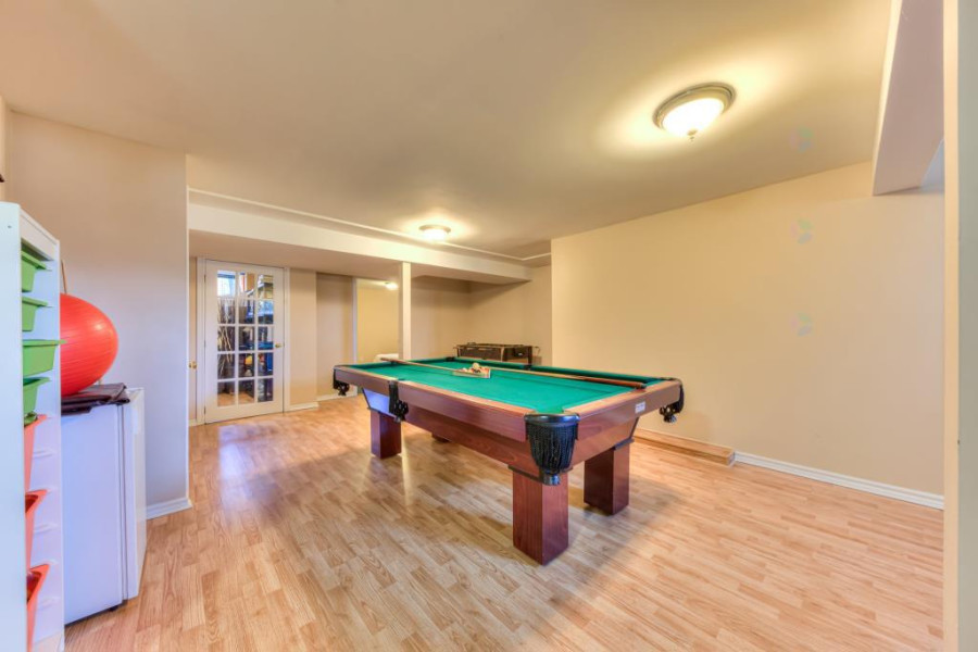 地下室为全装修空间,设有大型娱乐区、两间卧室及完整卫浴,同时配备多功能活动空间,可作为家庭娱乐、健身或多代同堂使用区域,整体空间利用率极高。后院为本物业核心亮点之一,整体经过专业景观设计,设有入地加热泳池、大面积露台及休闲区域,结合无后邻的私密环境,打造出完整的高品质户外生活空间,非常适合家庭聚会与夏季休闲使用。